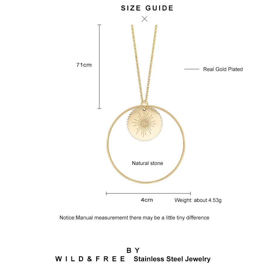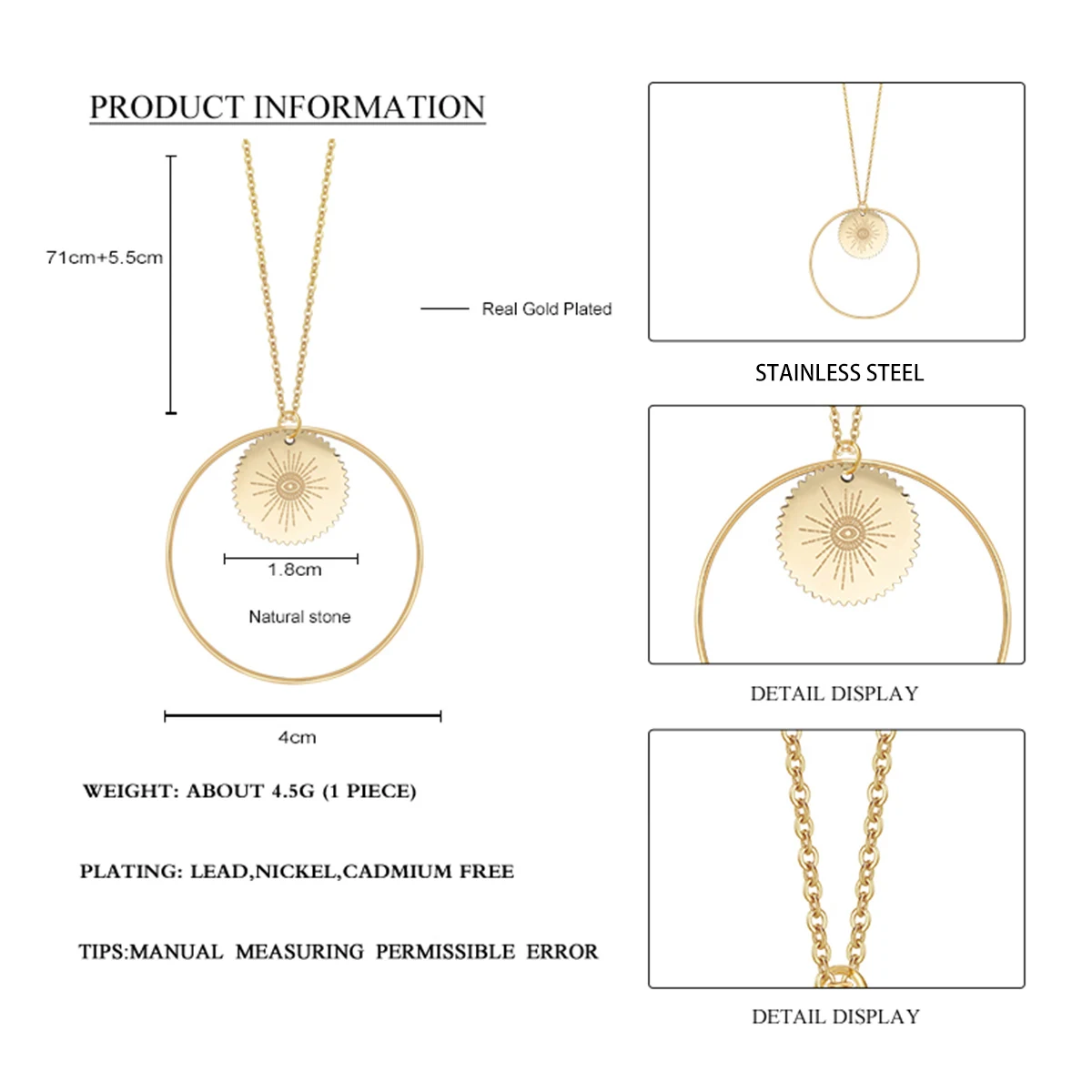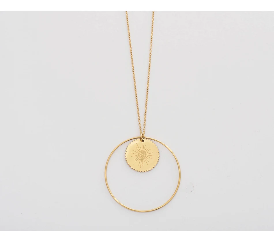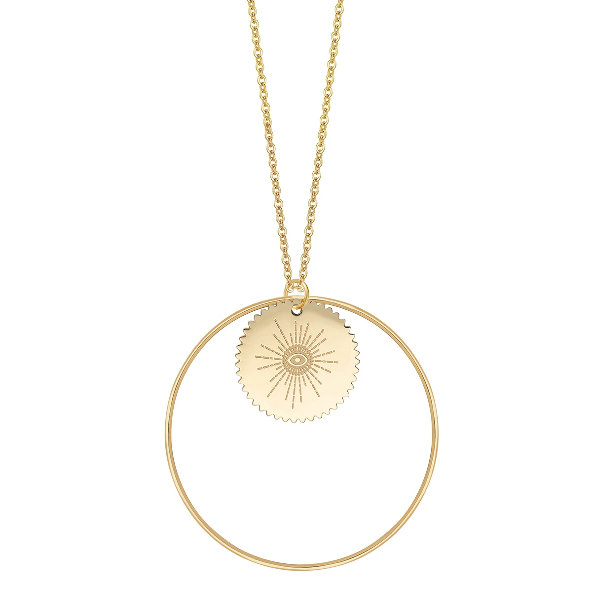 Универсальное модное ожерелье из нержавеющей стали, подвеска с золотыми глазами, ожерелье унисекс с большим кольцом, ювелирные изделия для вечеринки, подарок для друзей