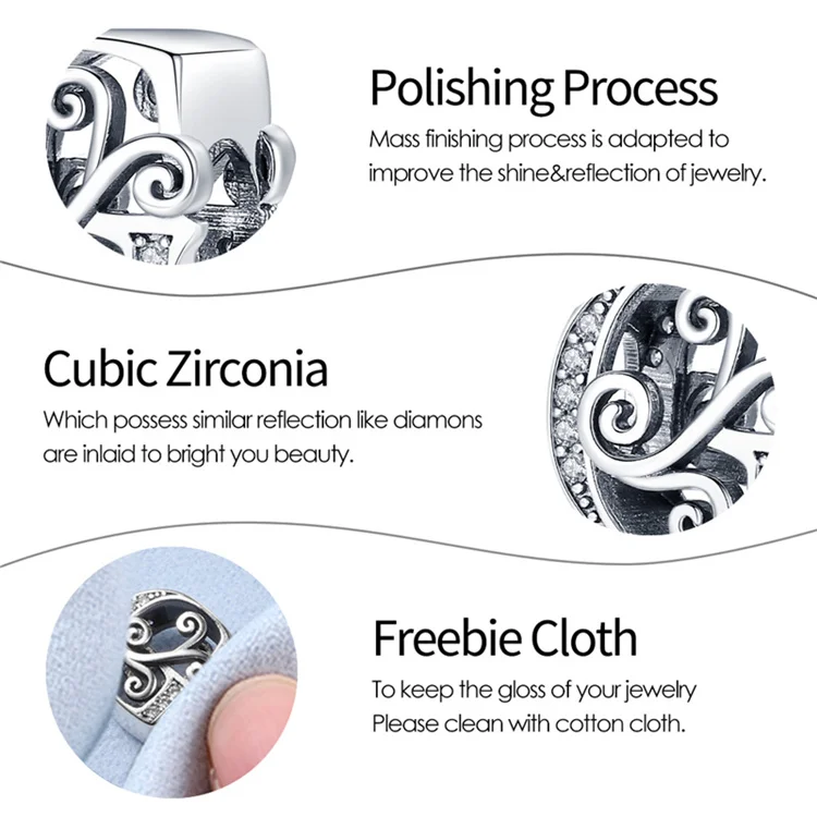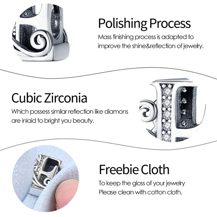 Бусины из серебра 925 пробы с фианитами для браслетов Pandora