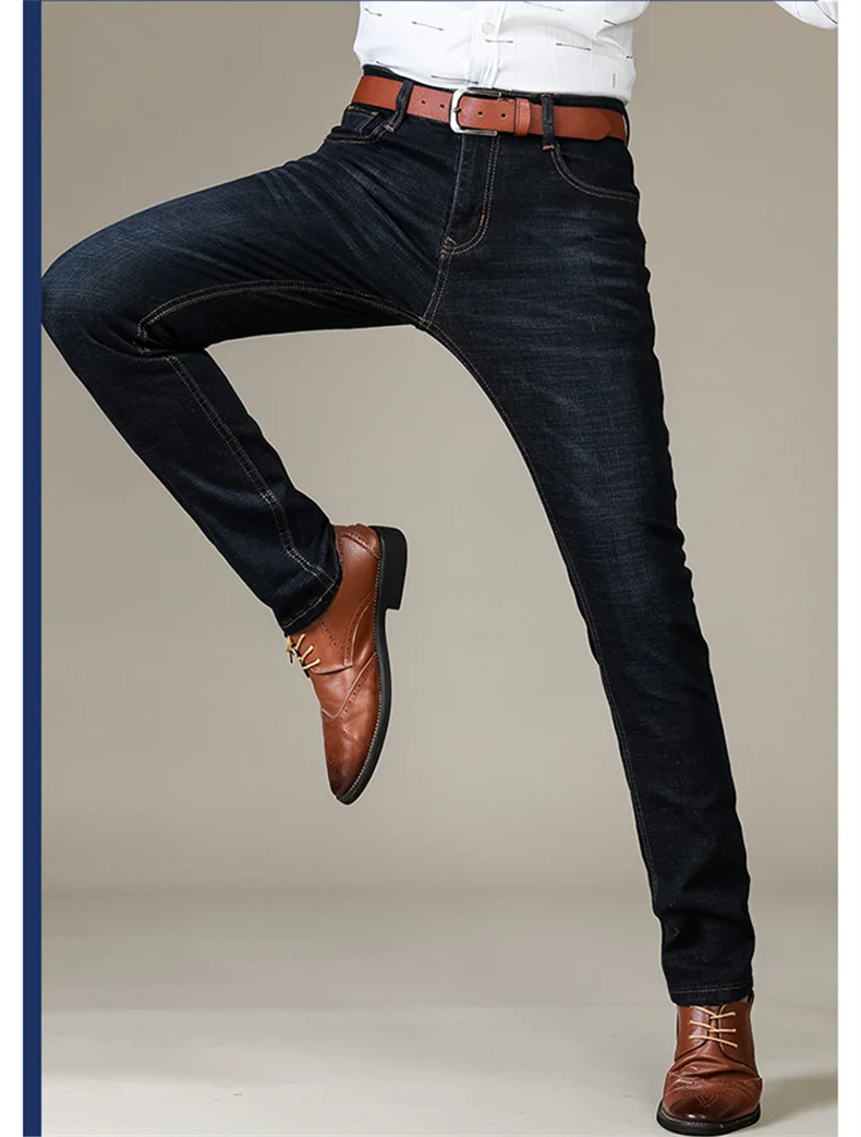 Джинсы мужские зимние теплые облегающие, модные утепленные брюки из...