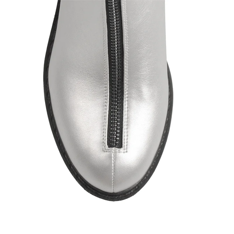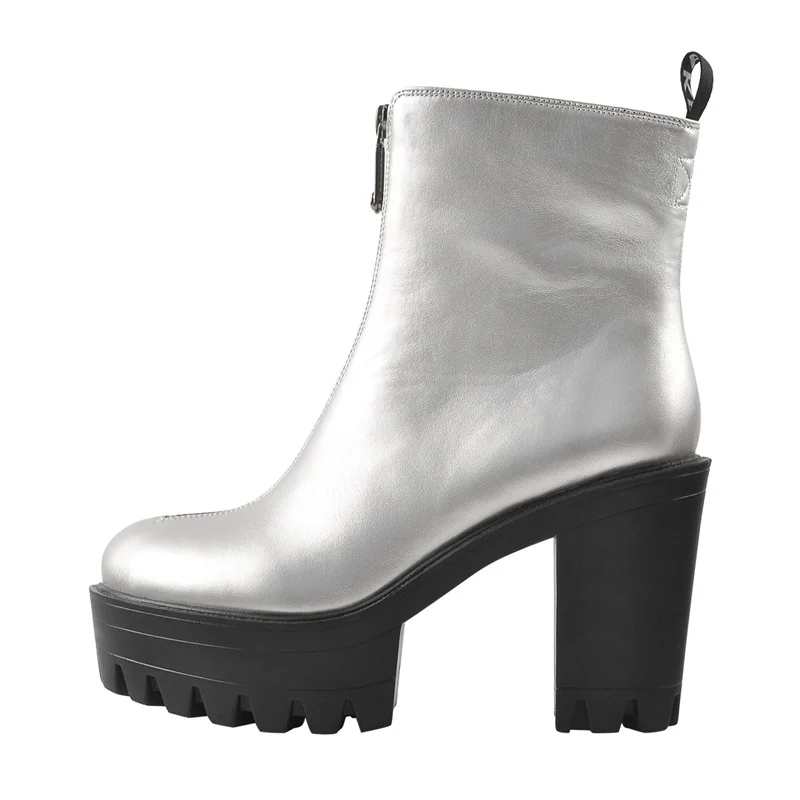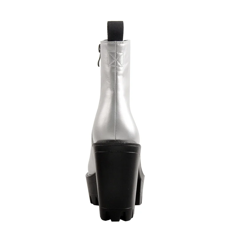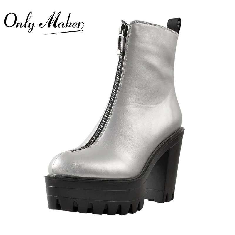Женские ботильоны на платформе Onlymaker, серебристые полусапожки на массивном высоком каблуке из мягкой искусственной кожи с двойной молнией, большие размеры, 2021