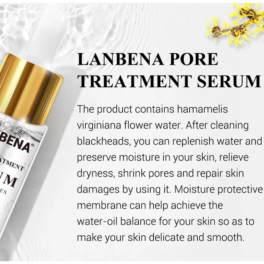 Название продукта: эссенция пор LANBENAЭффекты:В состав продукта входит цветочная вода хамамелиса Виргинского. После очистки черных точек вы можете восполнить воду и сохранить влагу в вашей коже, снять сухость, сузить поры и устранить повреждения кожи с помощью этого средства. Влагозащитная мембрана поможет достичь водно-масляного баланса для вашей кожи, чтобы сделать вашу кожу нежной и гладкой.