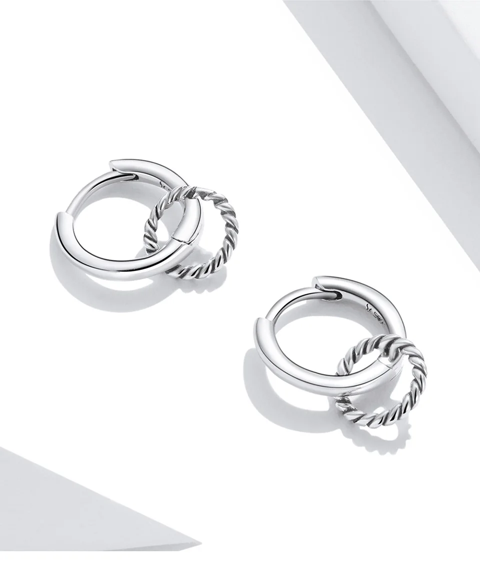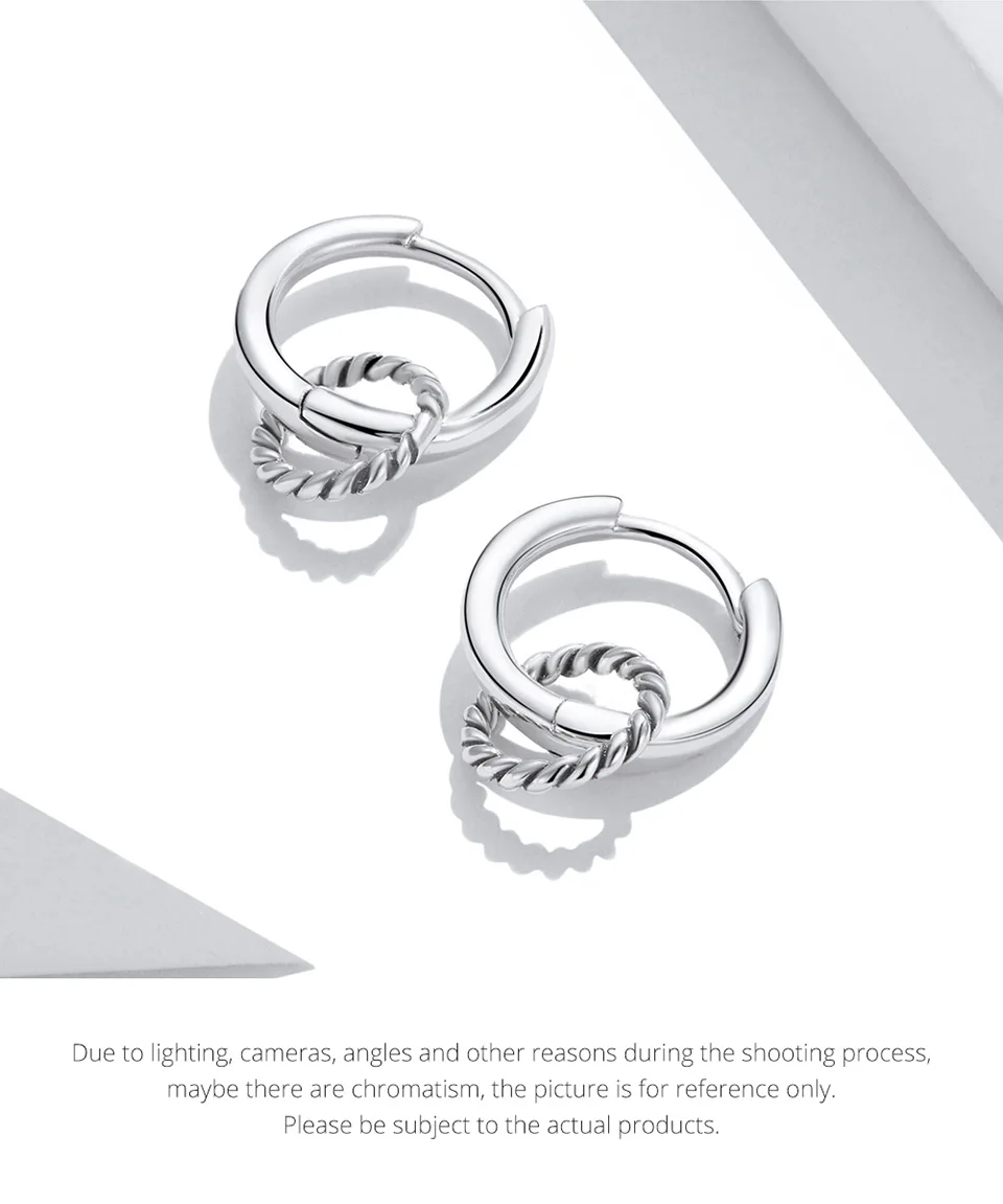Bamoer 2021 летние простые двойные кольца с пряжкой для ушей Классические женские серьги из стерлингового серебра 925 пробы элегантные ювелирные изделия на день рождения GXE1199
