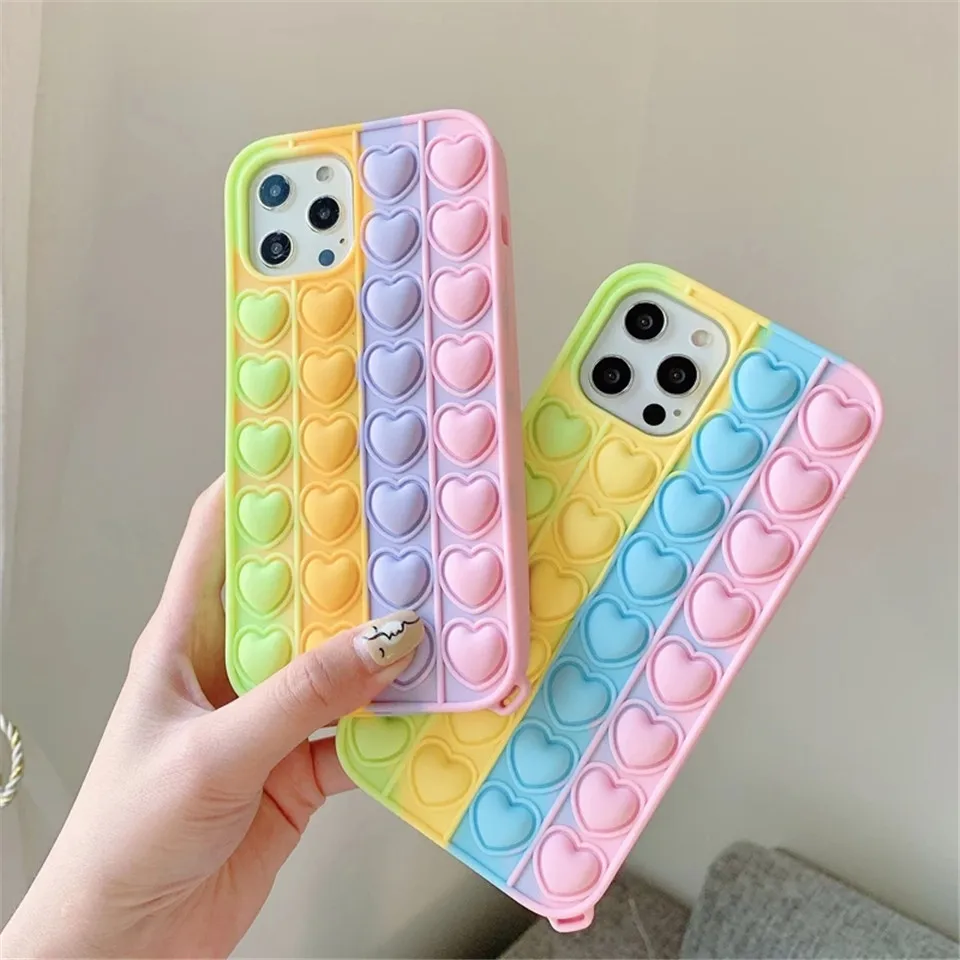 Модный силиконовый чехол с пузырьками в виде сердечек для Iphone 13...