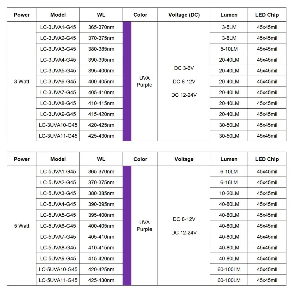Страна: BY Color: 365nm (365-370nm) Base Type: 3 Watt (8-12V) Color Temperature: 10 Pieces Доставка: China Post Registered Air Mail 31.12.2021