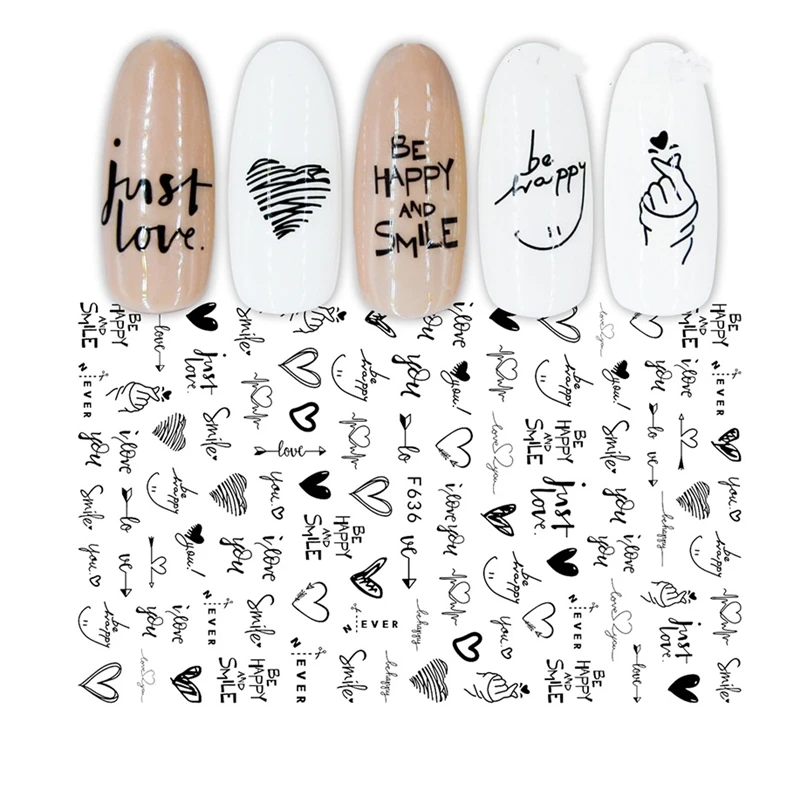 Новинка 2020, 1 шт., черно-белые 3D наклейки для ногтей, сексуальны...