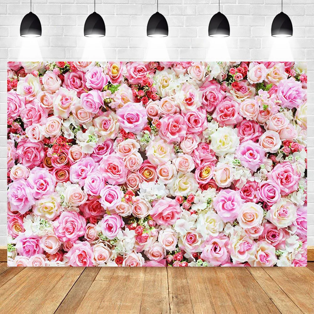 Фон для фотосъемки с розовыми цветами и золотыми блестками в гороше...