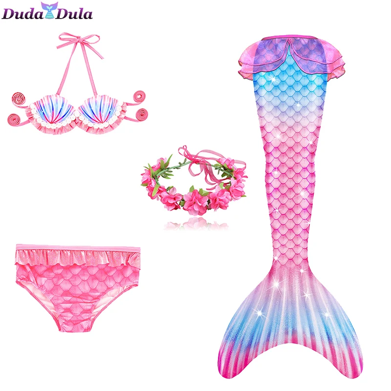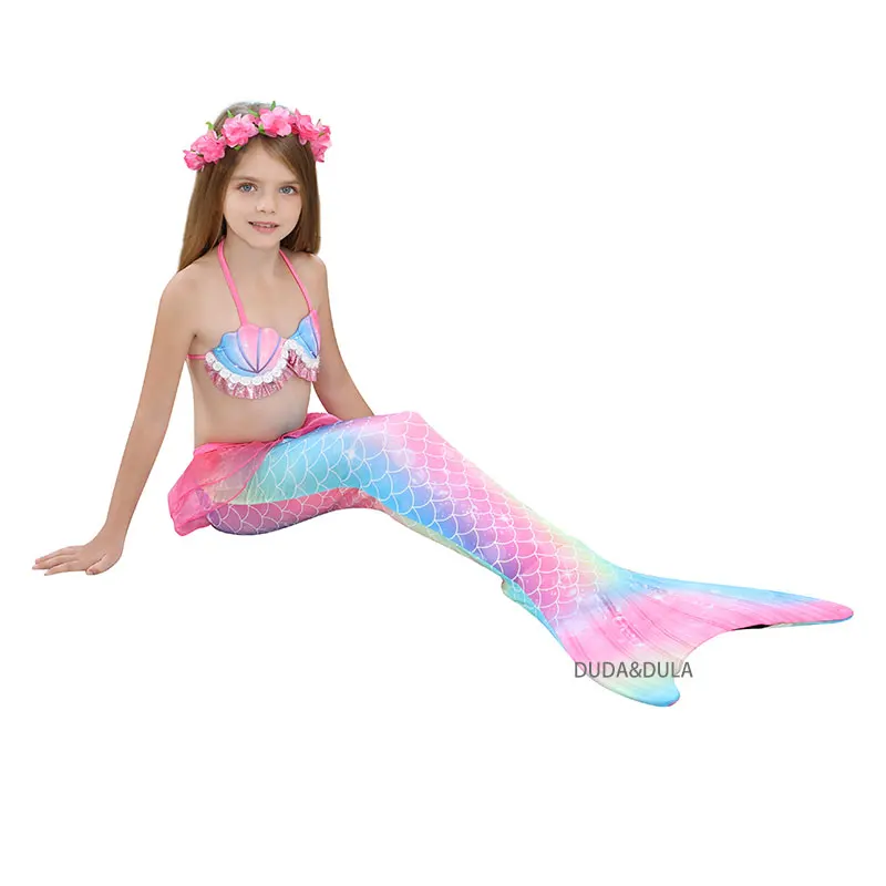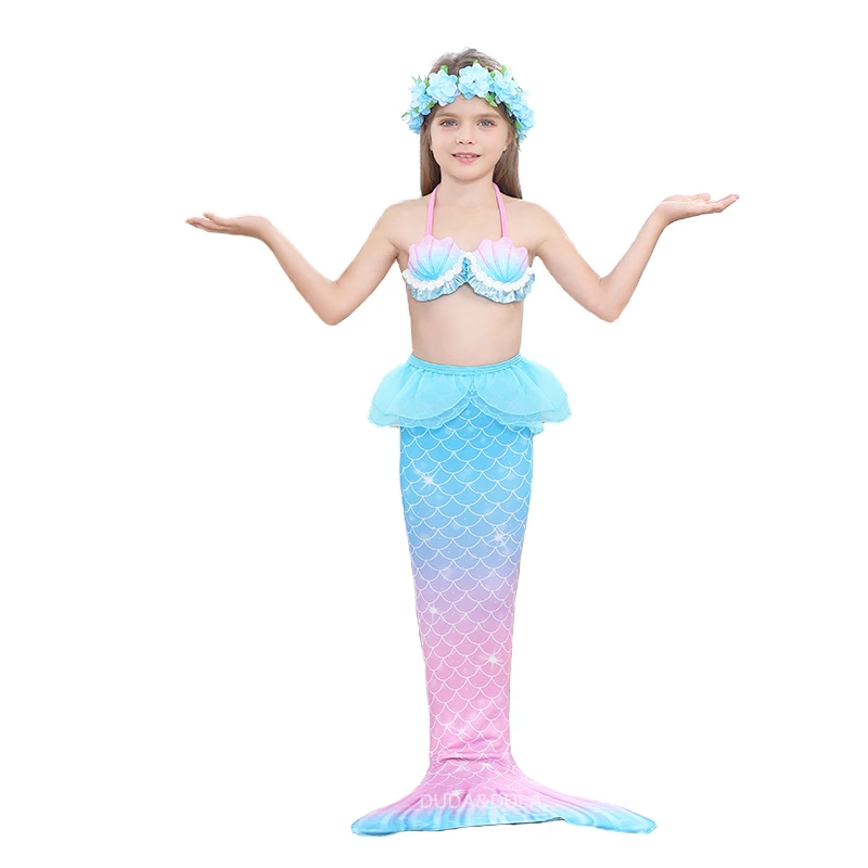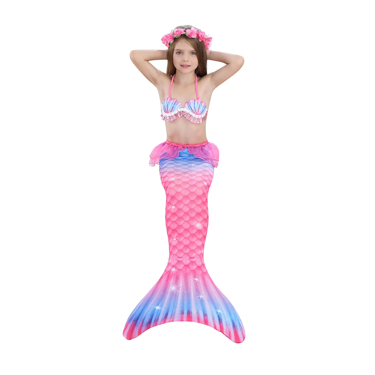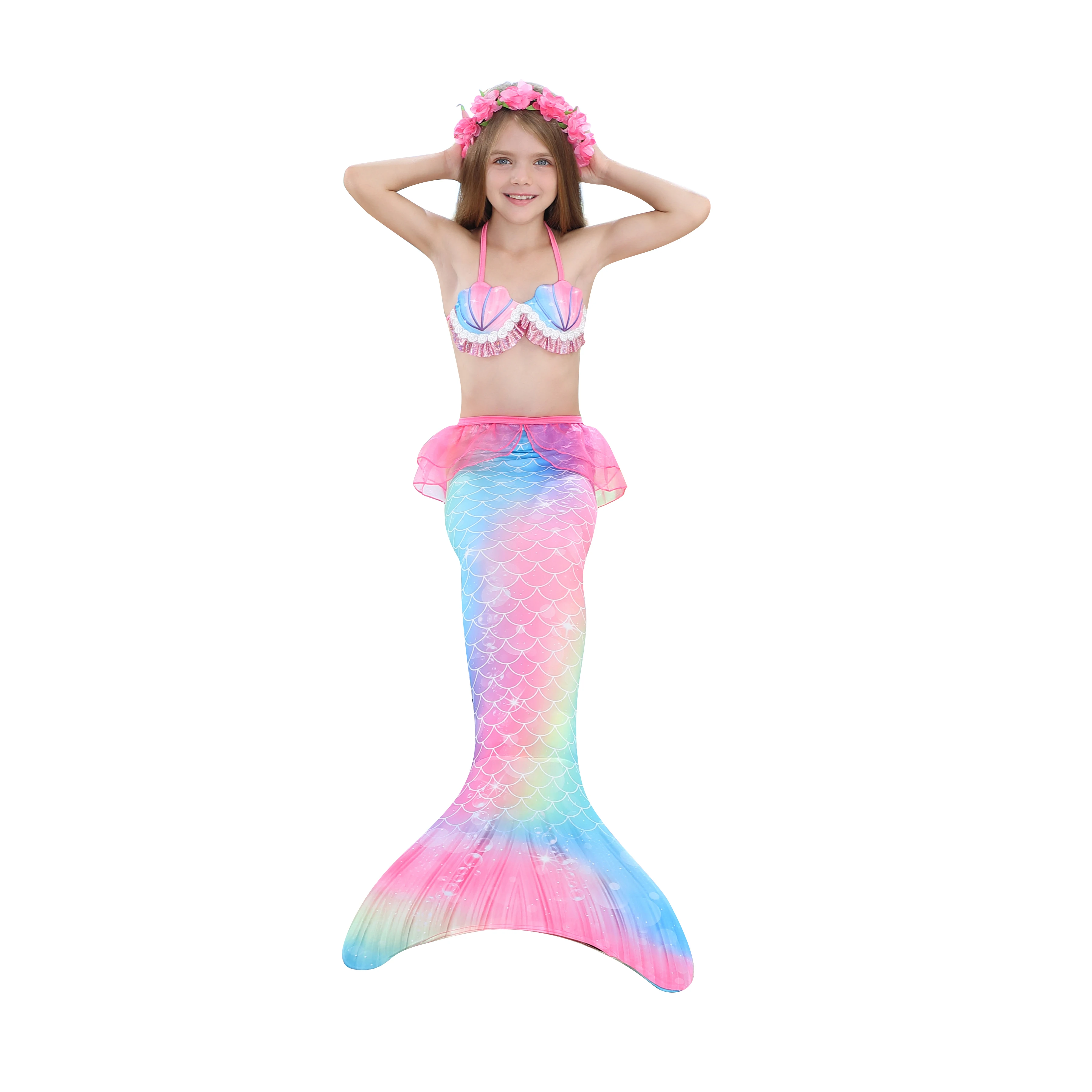 Костюм Русалки для девочек, Детский костюм для Хэллоуина, с аниме-принтом, купальник с хвостом Русалочки