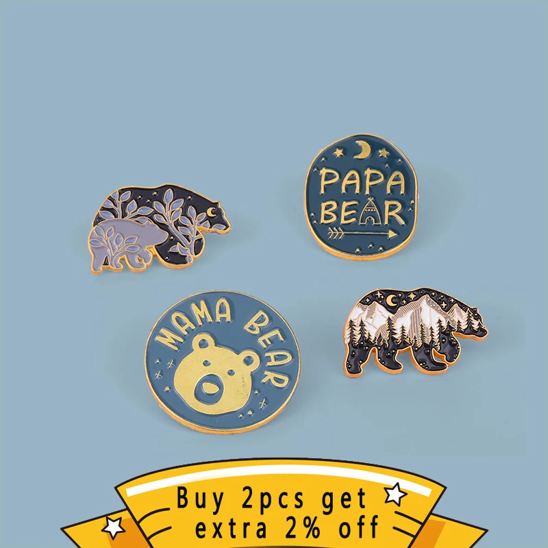 Эмалированные булавки с изображением лесного сада, мама, медведь, п...