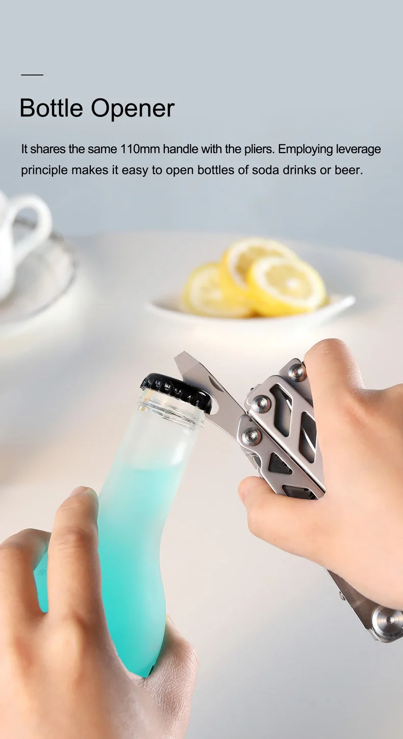● Инструмент NEXTOOL EDC оснащен несколькими инструментами, такими как отвертка, режущий провод, линейная бутылка и консервная банка, Пиллер, пинцет, установка, деревянные пилы, стеклянный выключатель и т. д.