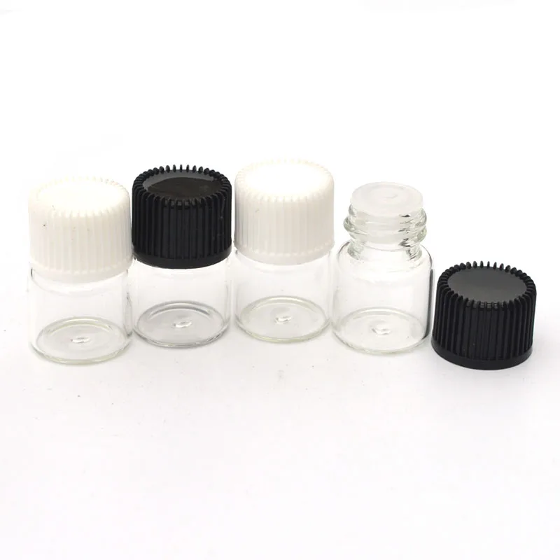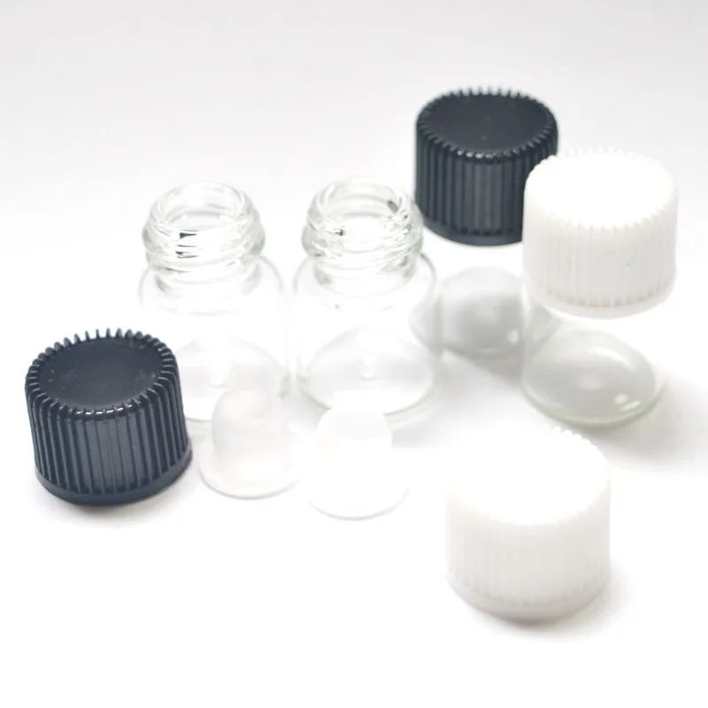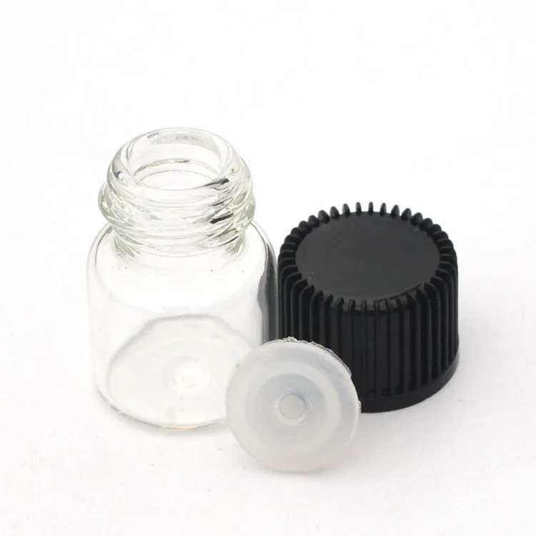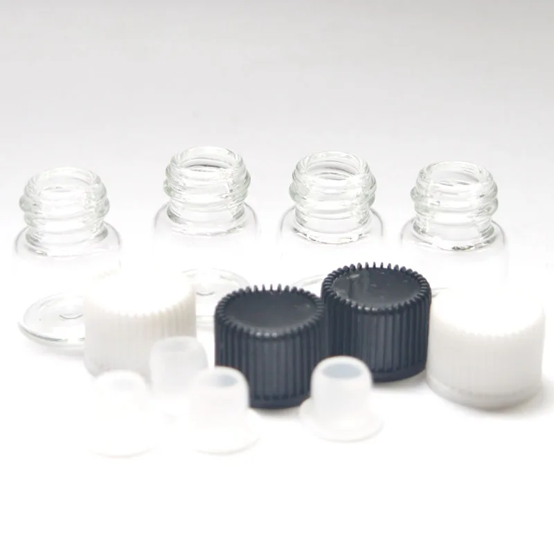 500 шт., 1 мл, маленькие прозрачные стеклянные флаконы для парфюма, многоразовые флаконы с редуктором с отверстием и крышкой, маленькие флаконы для образцов эфирного масла