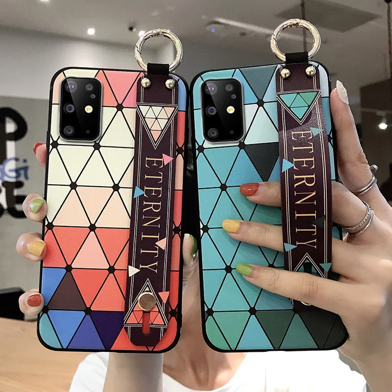 Чехол Realme 8 Pro Модный Цветной с геометрическим рисунком из мягкого ТПУ с держателем для телефона для OPPO A9 A5 2020 Reno 6 5 Pro для мужчин и женщин
