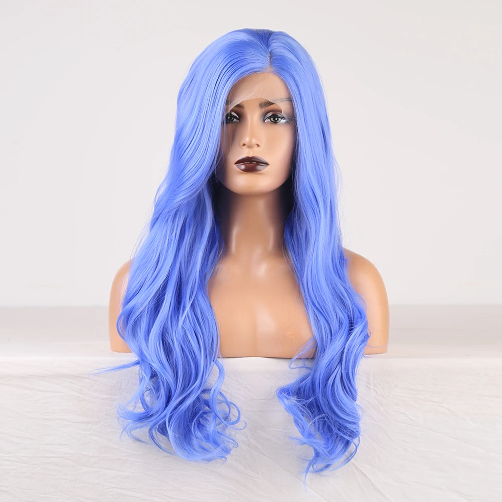 BETTYLOVE Омбре синий синтетический кружевной передний парик высоко...