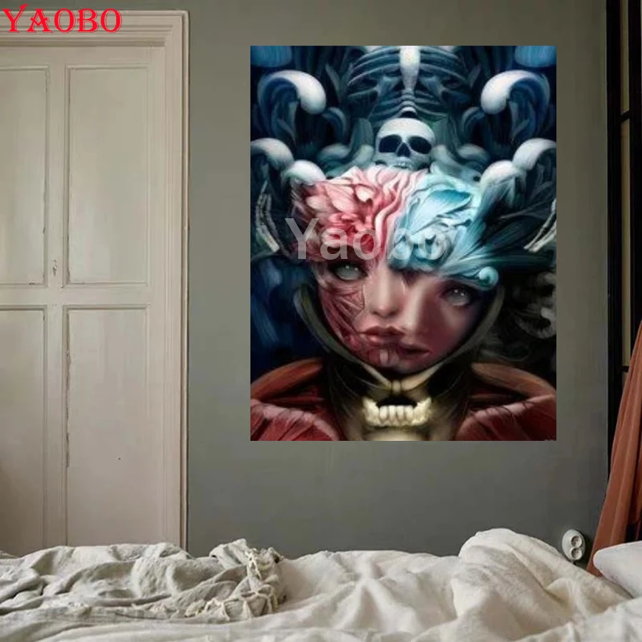 Картина из страшных страз с изображением женщины и черепа, квадратная, круглая, ручная работа, комплекты для вышивкимозаики