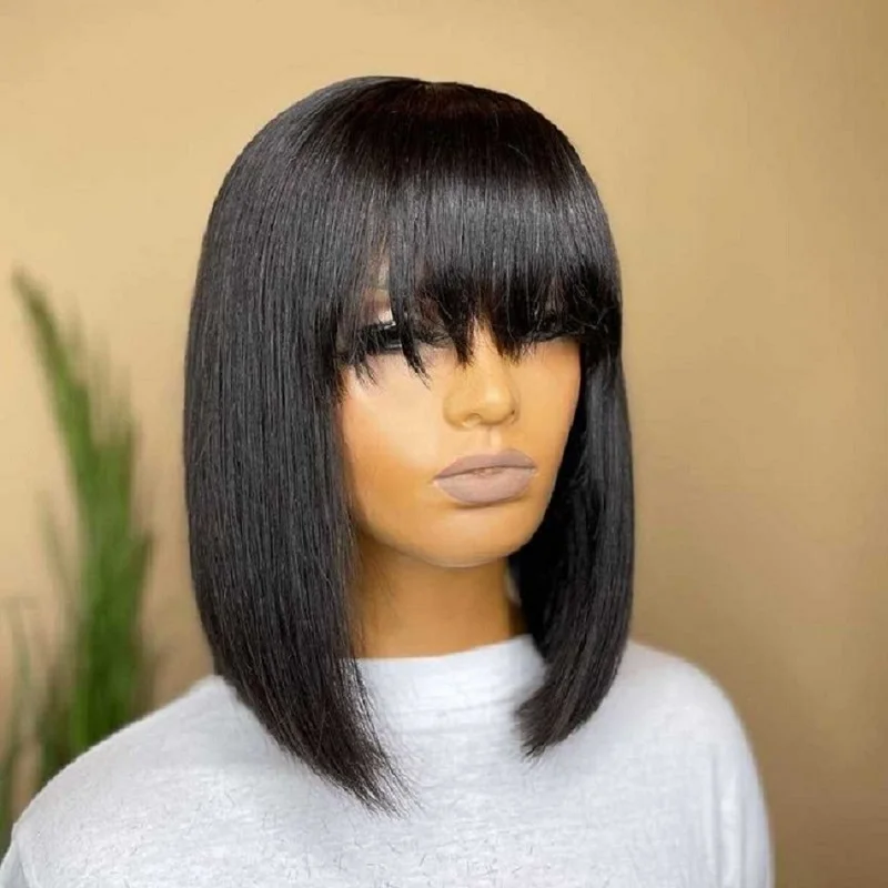 Короткий прямой парик Боб с челкой, парик из человеческих волос Боб...