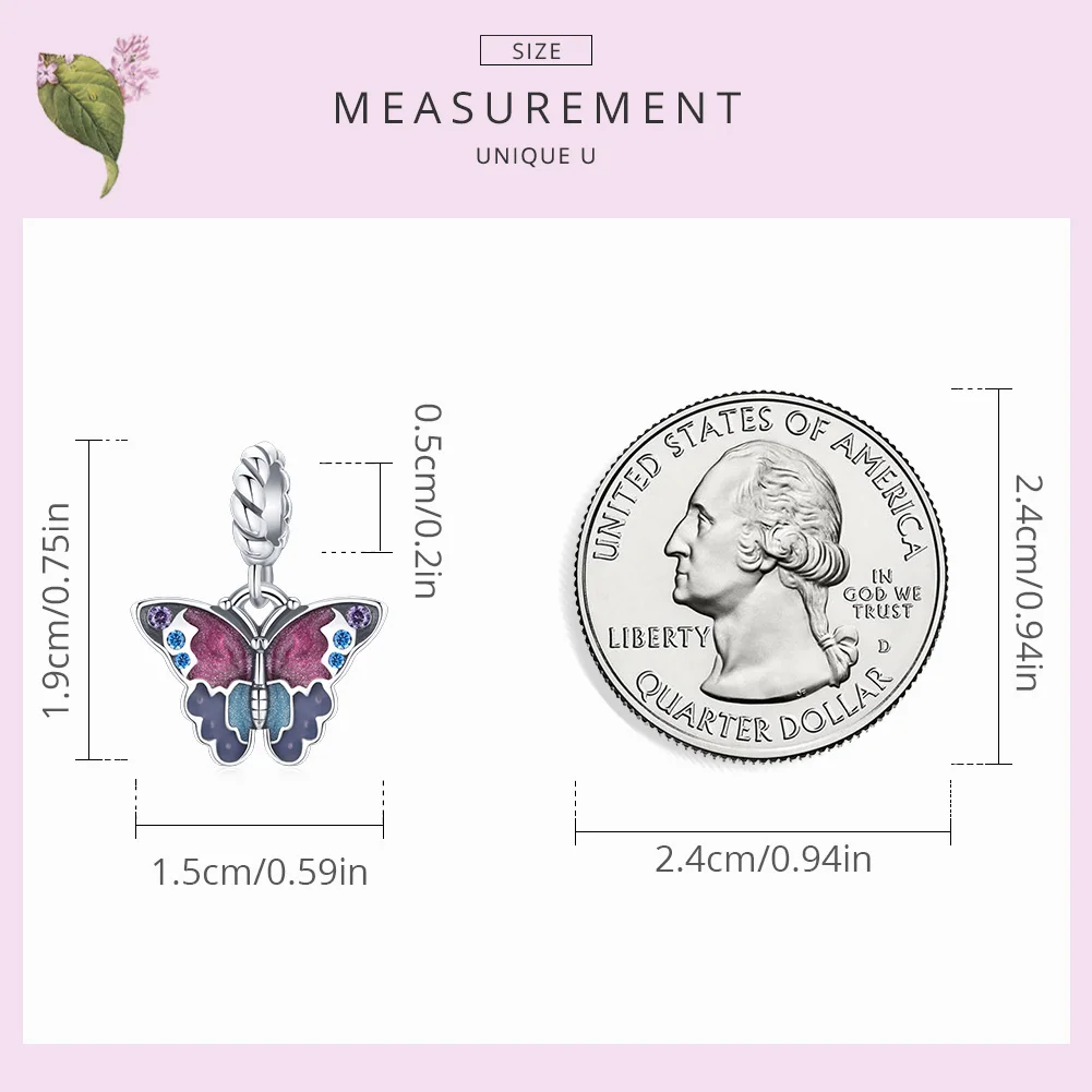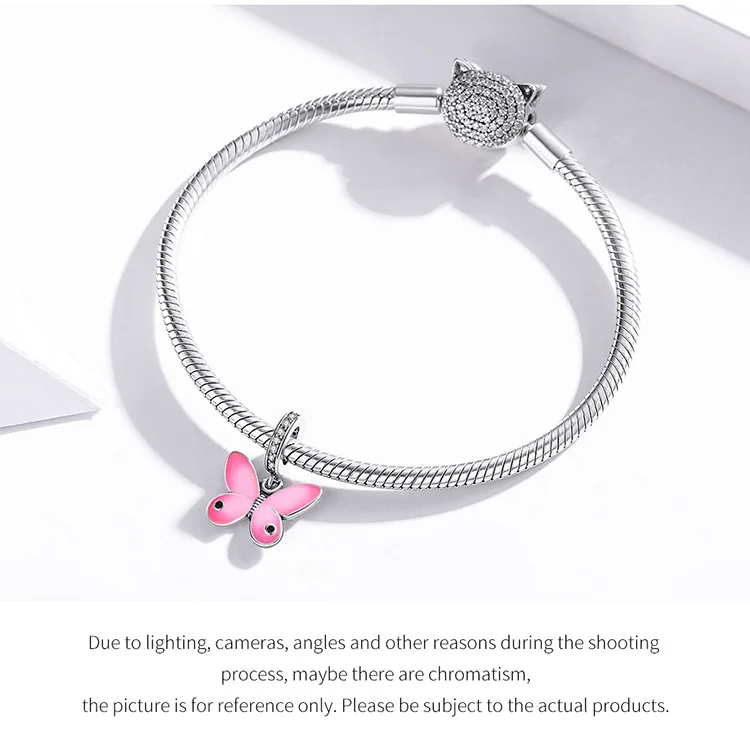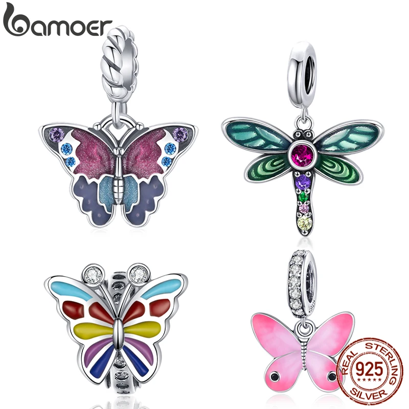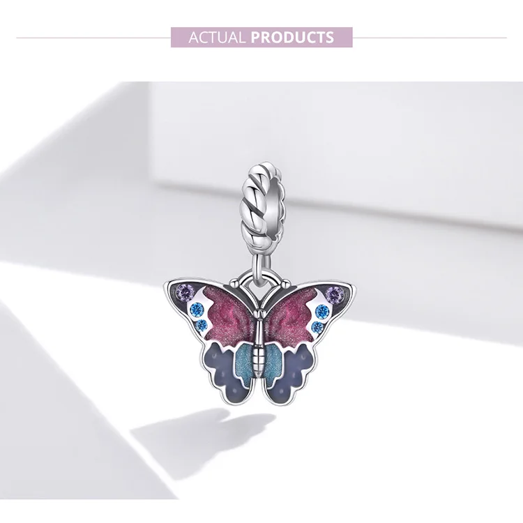 Bamoer фантазия фиолетовая бабочка очарование 925 стерлингового серебра узор бабочка эффект кулон для браслета браслет модные ювелирные изделия