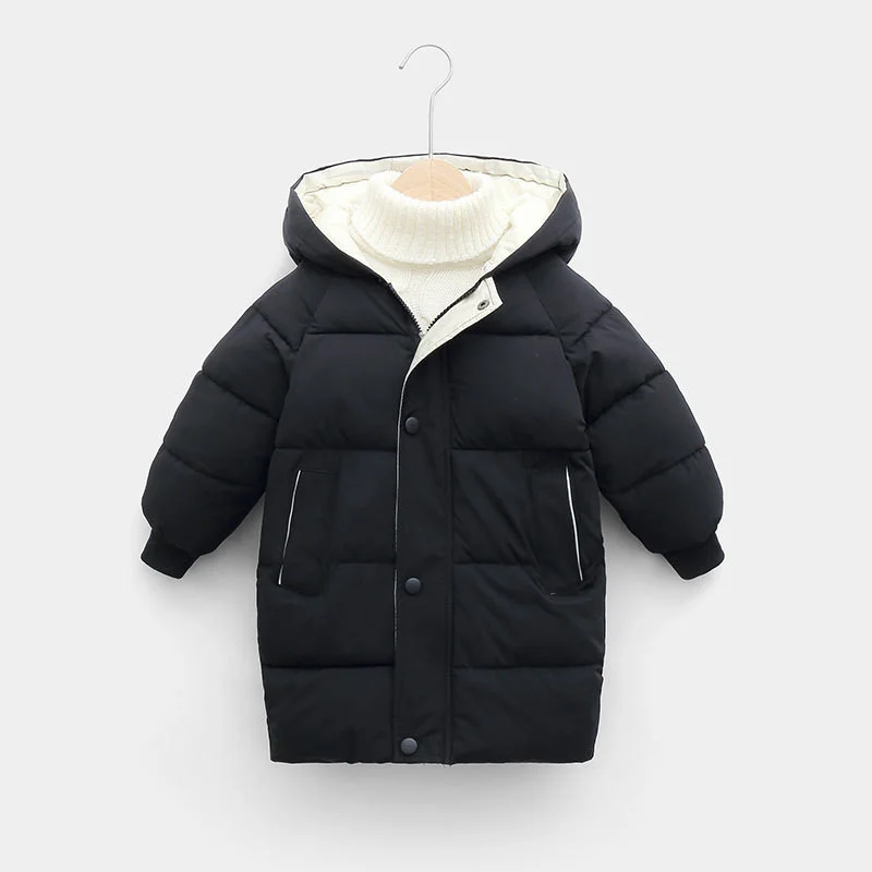 Детское пальто, зимняя Подростковая парка с хлопковой подкладкой для мальчиков и девочек, утепленная длинная куртка, верхняя одежда для малышей