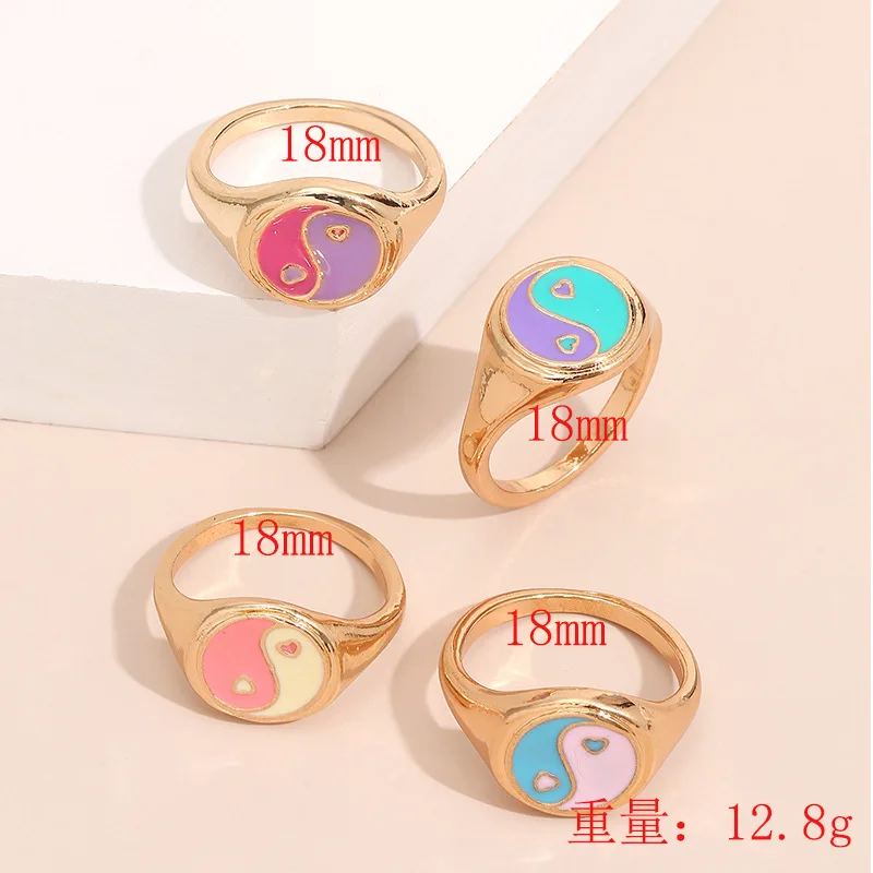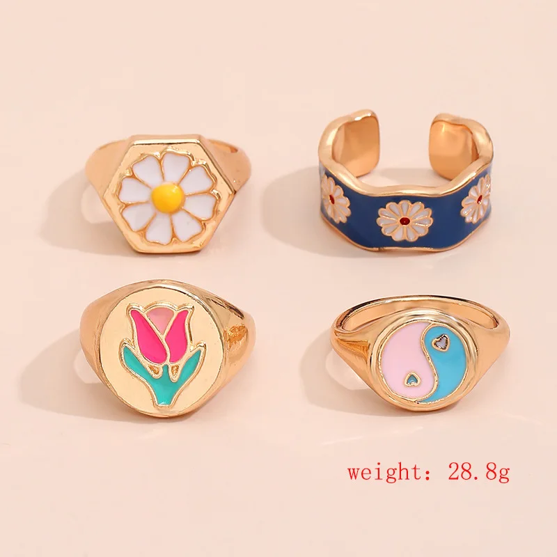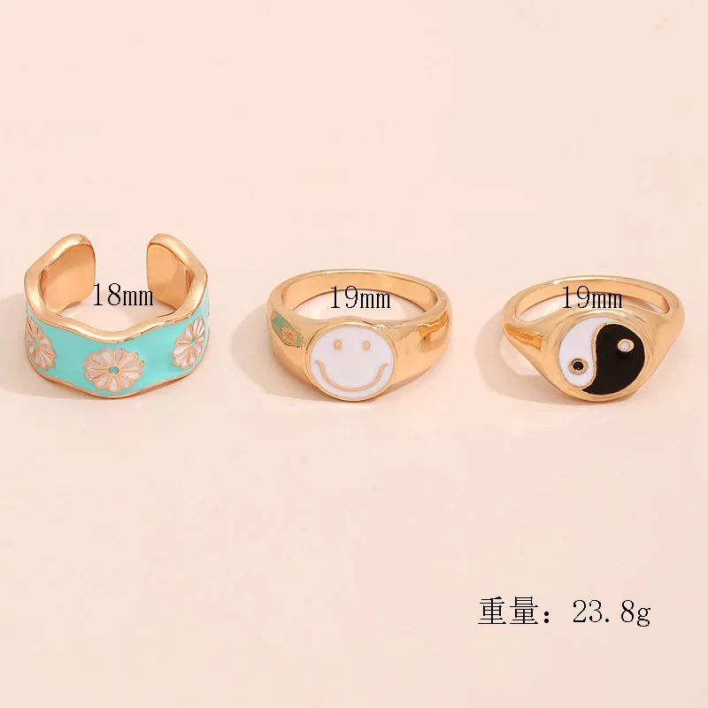 Модный винтажный набор колец Инь Янь с цветами и улыбающимся лицом ...