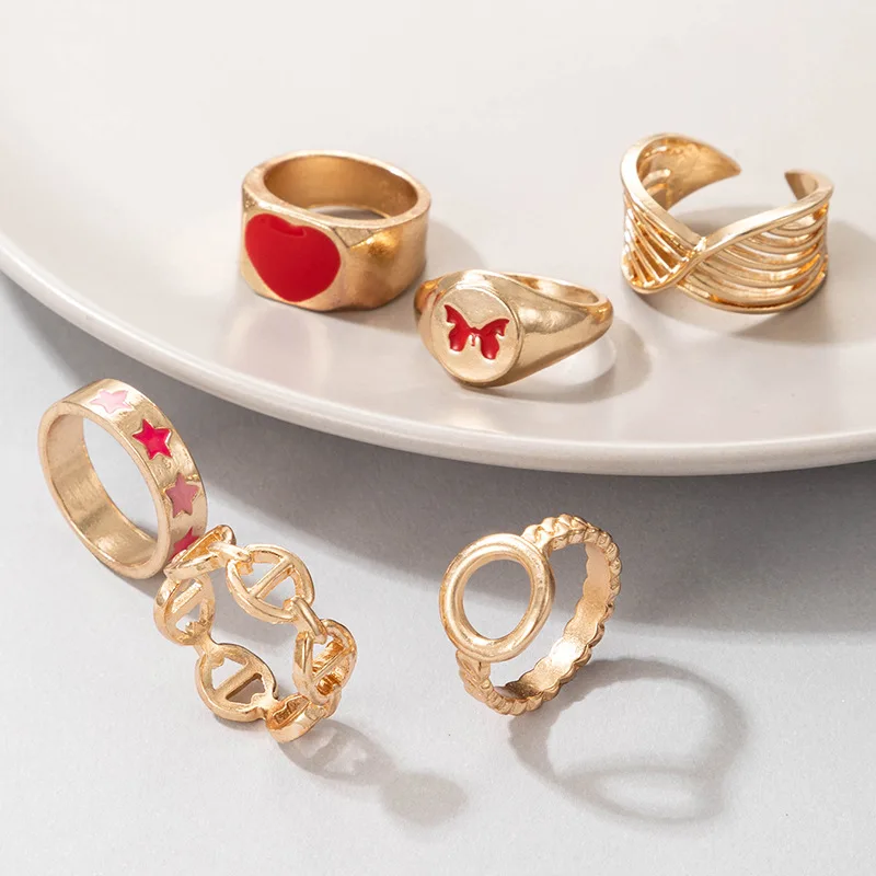 DIEZI простой золотистый набор колец в форме сердца и звезды для женщин, модные кольца с масляной бабочкой, Подарочные ювелирные изделия