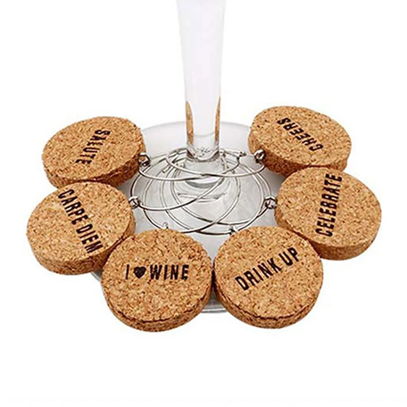6 шт Вино Стекло маркеры из пробкового дерева Стекло Подвески DIY К...