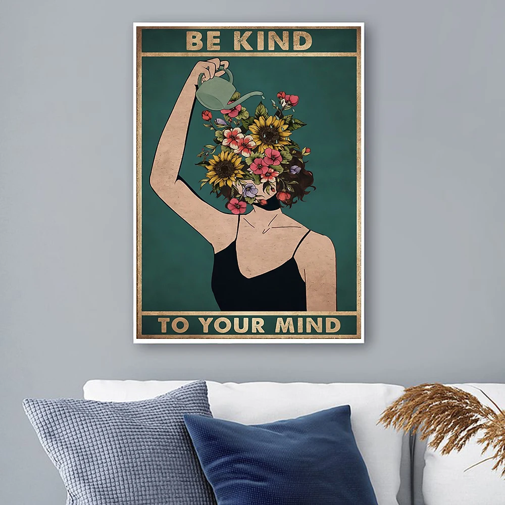 Ретро-постер умственное здоровье для сада, современный цветочный постер на холсте с изображением женщины, психолога, настенное украшение в скандинавском стиле