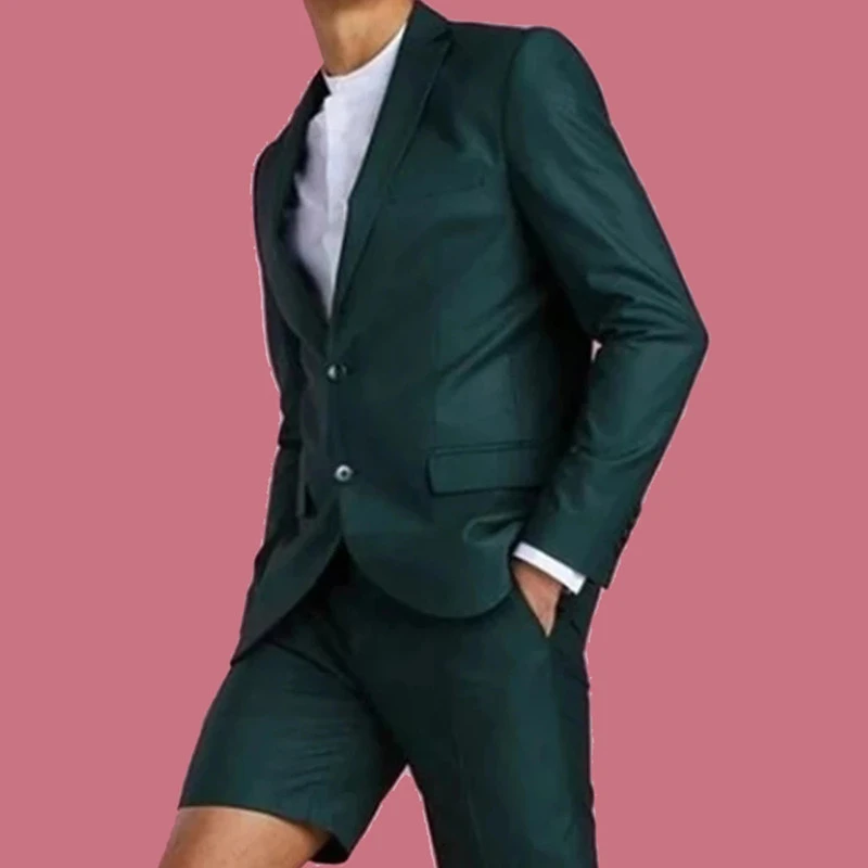 Костюм мужской облегающий темно-зеленый, смокинг для жениха, пиджак с вырезом на лацкане, короткие брюки, индивидуальный пошив, лето