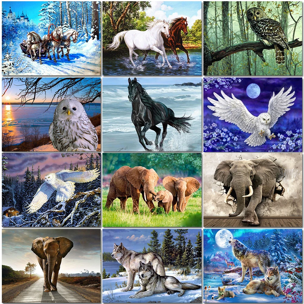 Алмазная живопись, вышивка крестиком, волк, слон, лошадь, 5d алмазная вышивка, полный набор инструментов, мозаика с совой, украшение для дома, подарок
