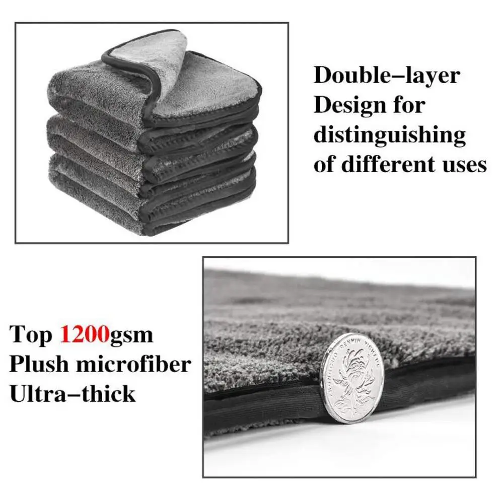 Полотенце из микрофибры для автомобильной мойки, 1200 гм2, двухстороннее, из серого кораллового флиса, быстросохнущее