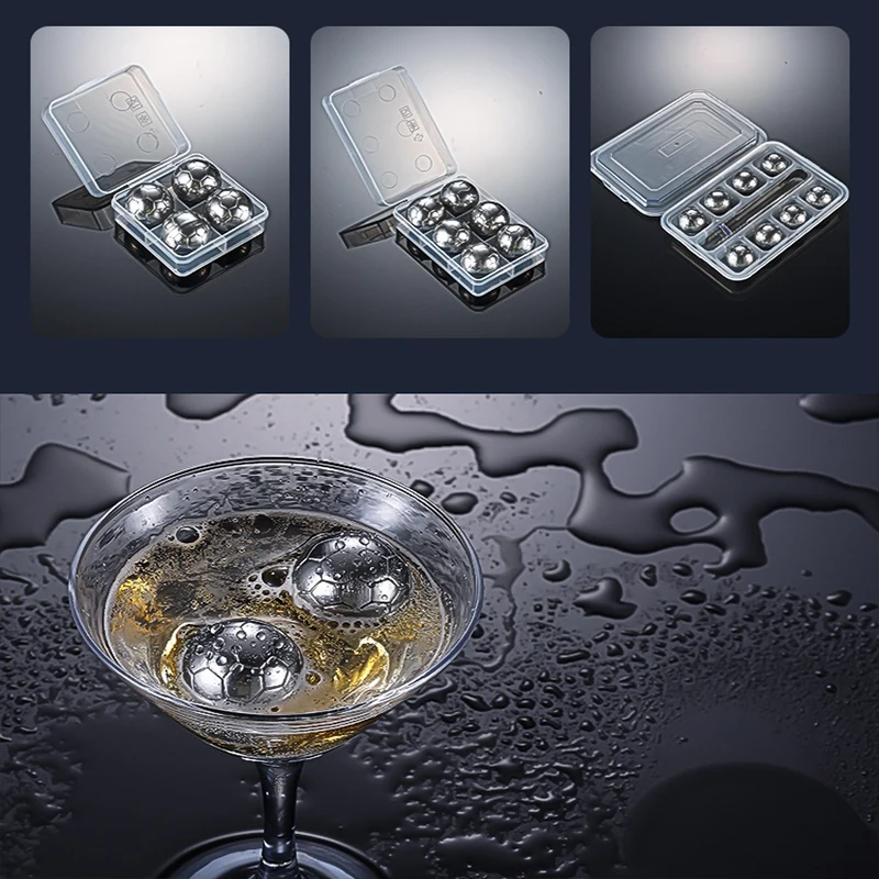 Кубики льда из нержавеющей стали в форме футбольного мяча, 8 шт.