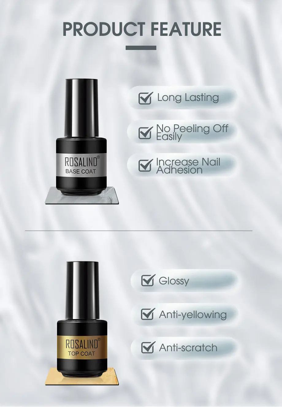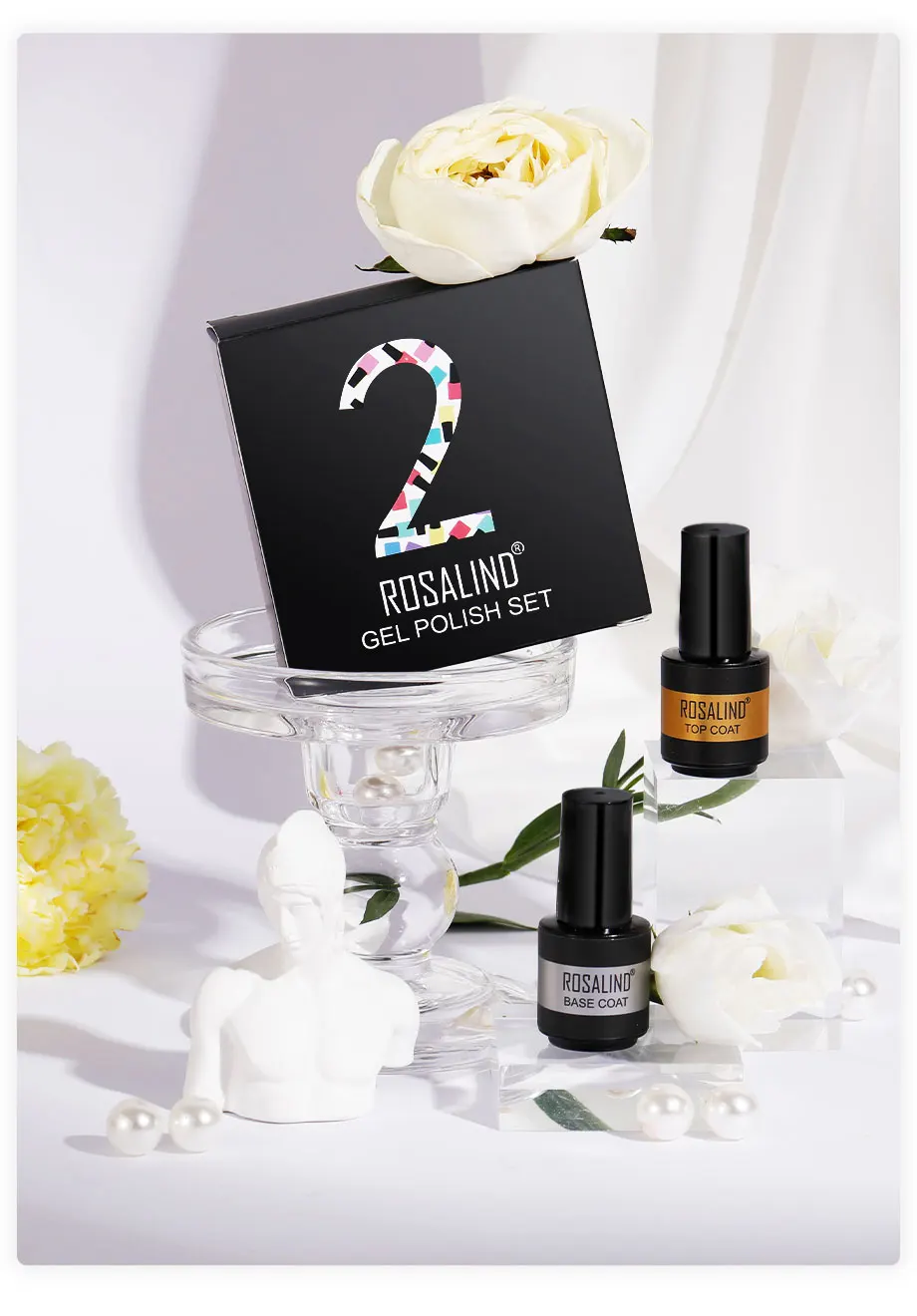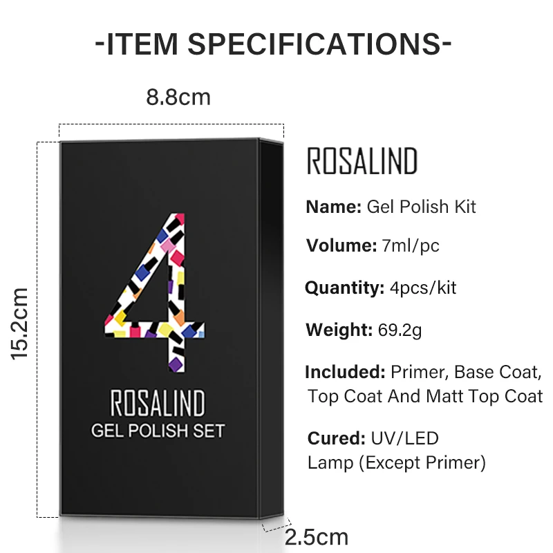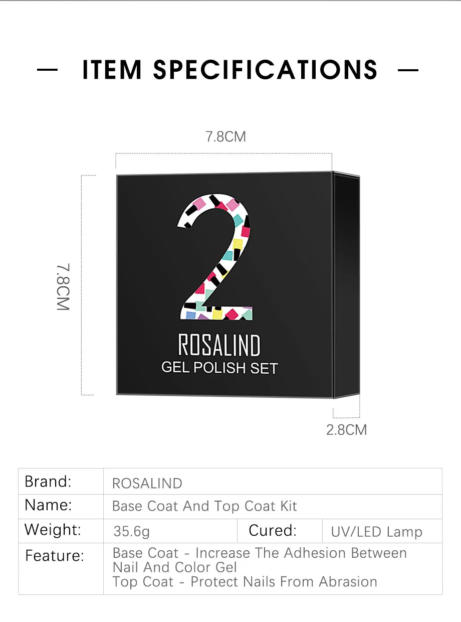 Комплект базового и топового покрытия ROSALIND, Гель-лак для ногтей, гибридный лак для маникюра, для нейл-арта, для всех ногтей, для кутикулы, масляная база, верхняя коробка, набор