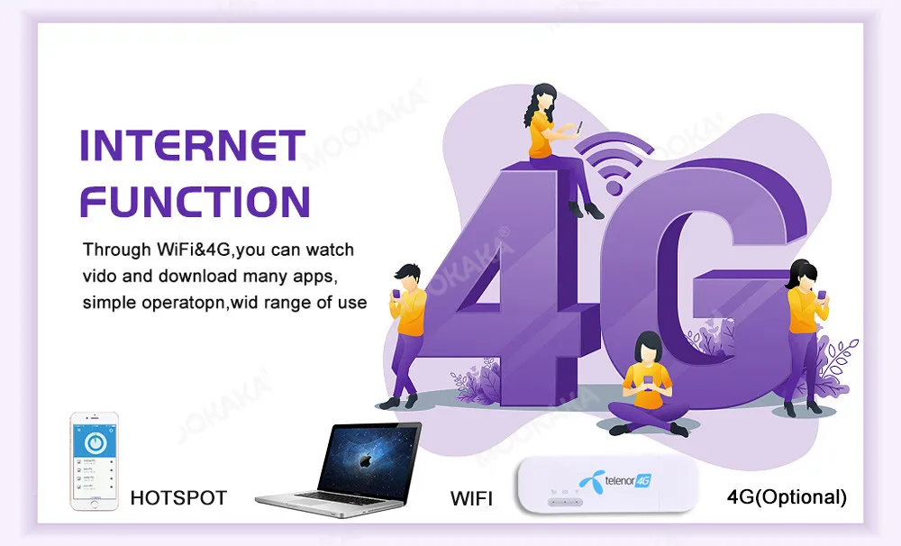 1. Встроенный Wi-Fi чип, используйте Wi-Fi напрямую. 2. Купите 4G LTE