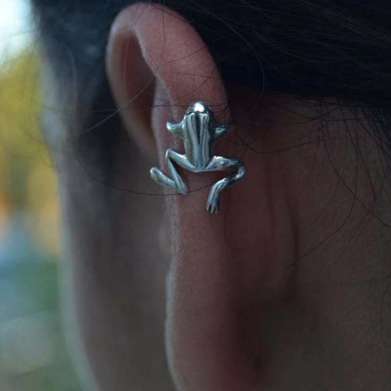 Каффы для ушей в виде лягушки, серебристые, клипсы для женщин, кафф...