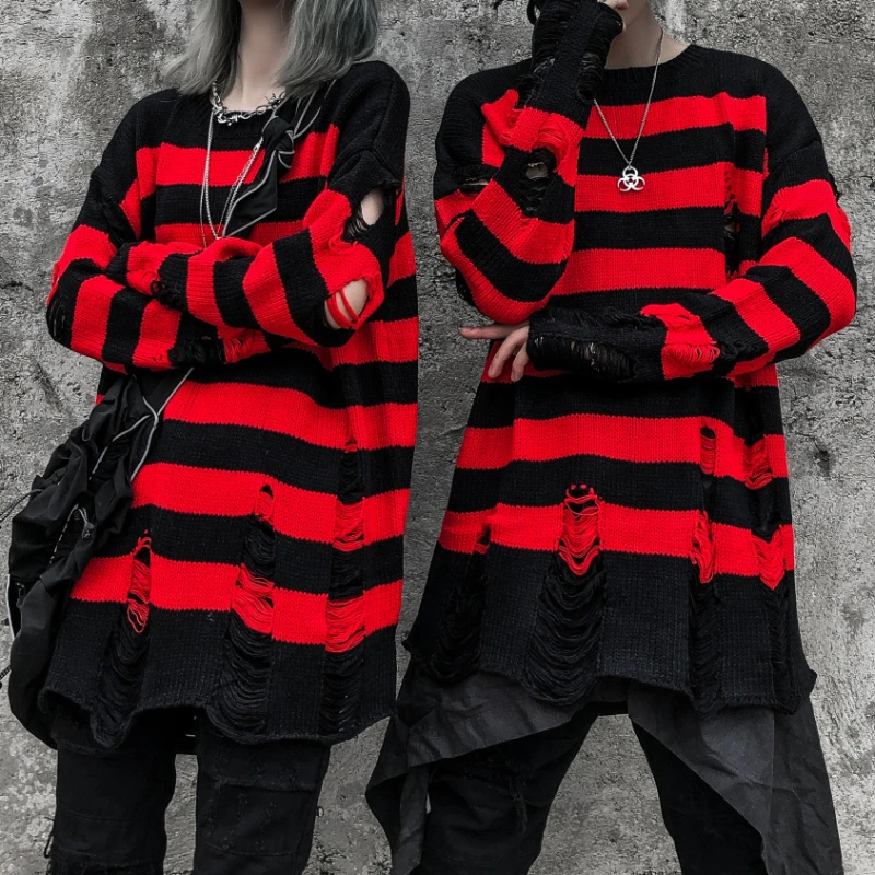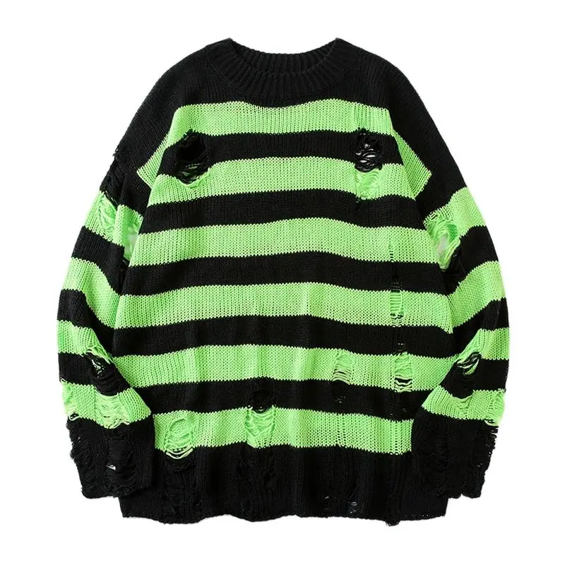 Женский вязаный свитер в полоску, свободные пуловеры оверсайз в стиле Харадзюку, модные вязаные джемперы с длинным рукавом