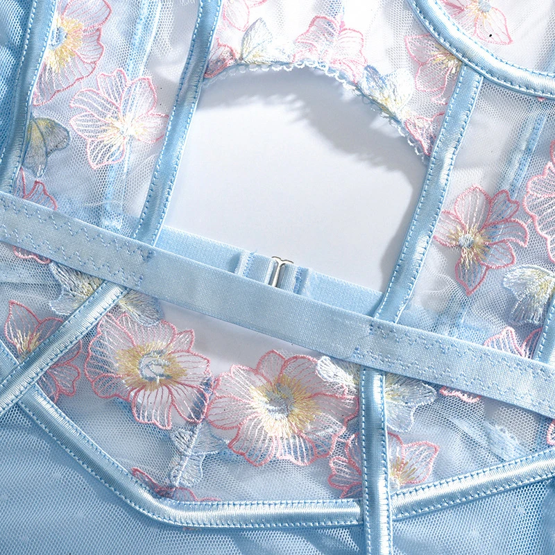 Сексуальное Кружевное боди Ellolace с цветочной вышивкой, прозрачный бюстгальтер на косточках, нижнее белье с открытой спиной, лоскутный облегающий Топ