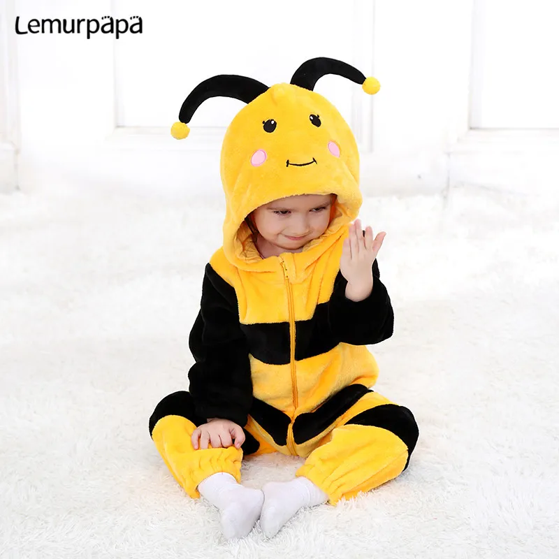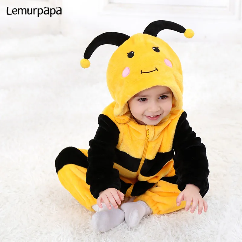 Комбинезон детский, фланелевый, с пчелами, зимний, 2021