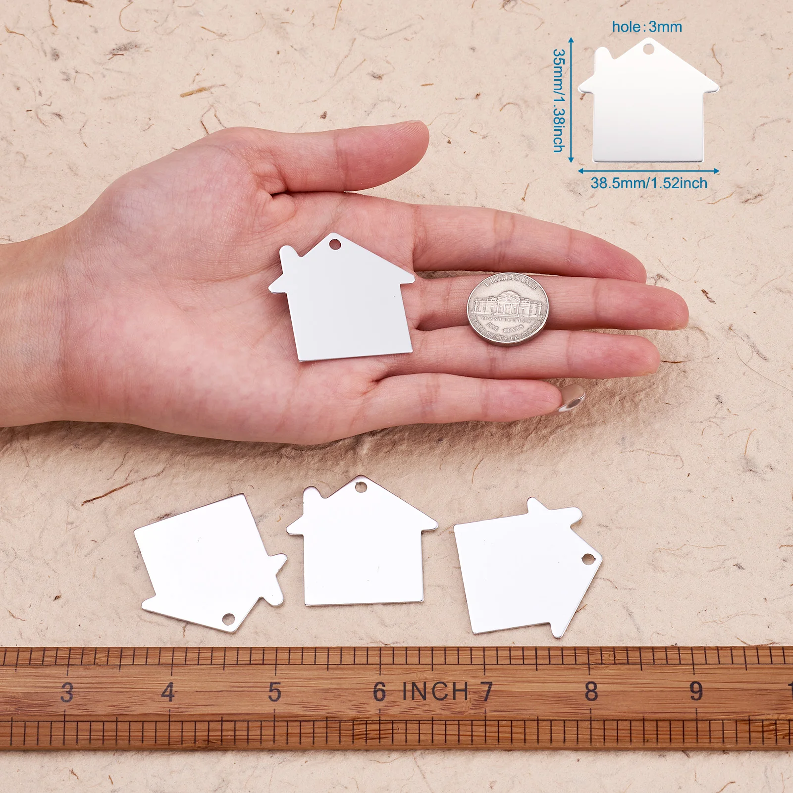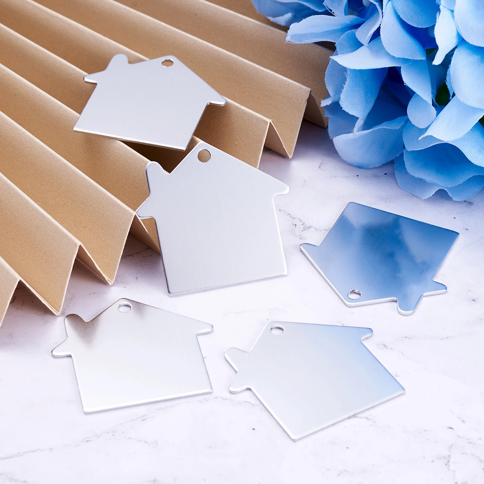 Алюминиевые подвески, штампованные Пустые бирки, дом, серебро