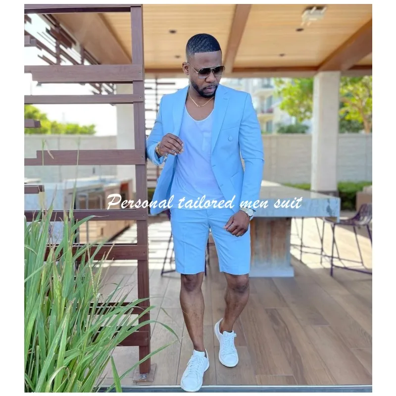 Светильник ской Свадебный костюм смокинг для жениха, светло-голубой облегающий блейзер с шортами для мужчин и женщин, Осень-зима 2022