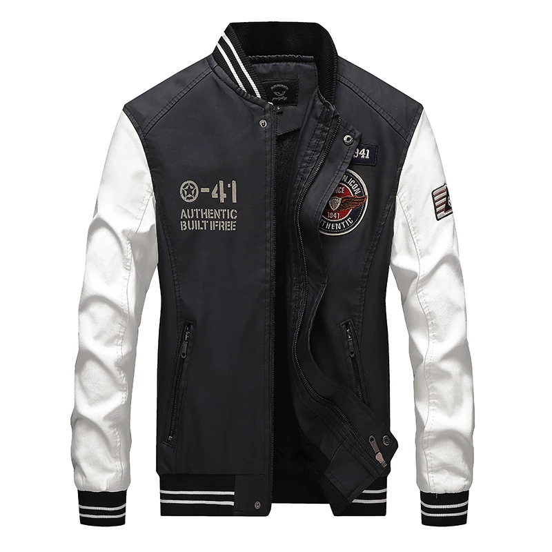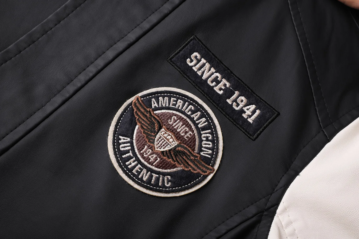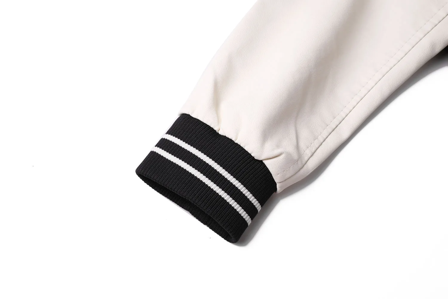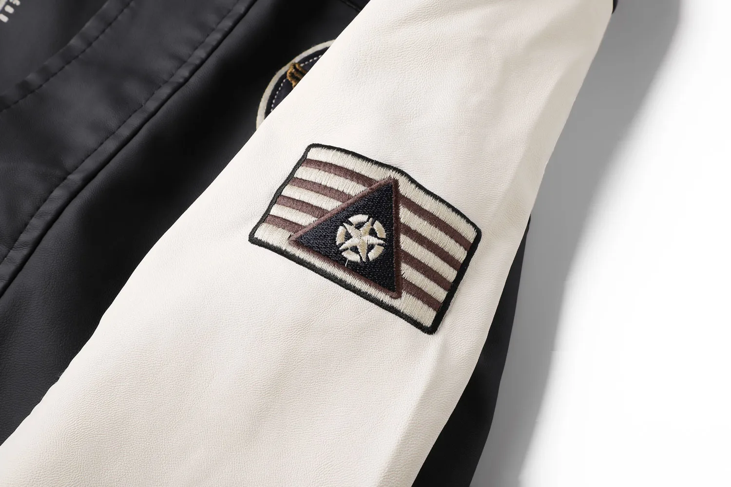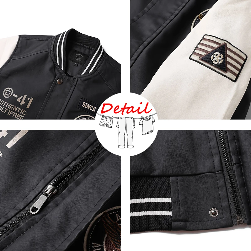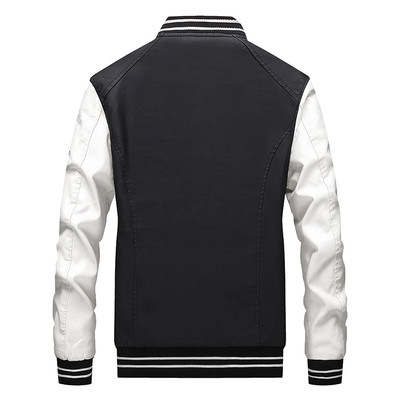 Мужская кожаная куртка с вышивкой, повседневные зимние бейсбольные ...