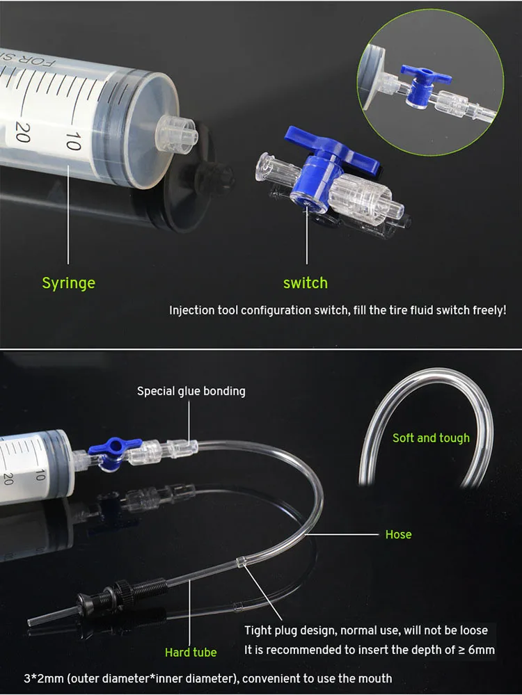 Инструмент для впрыска жидкости для бескамерных шин велосипеда, шприц для герметика для бескамерных шин, набор резиновых шлангов для горного велосипеда