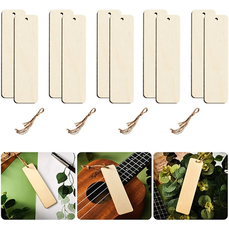 Деревянная Закладка для книг, пустые закладки с веревками, деревянные книжные маркеры, прямоугольная тонкая подвесная бирка с отверстиями для творчества ly7 21, оптовая продажа