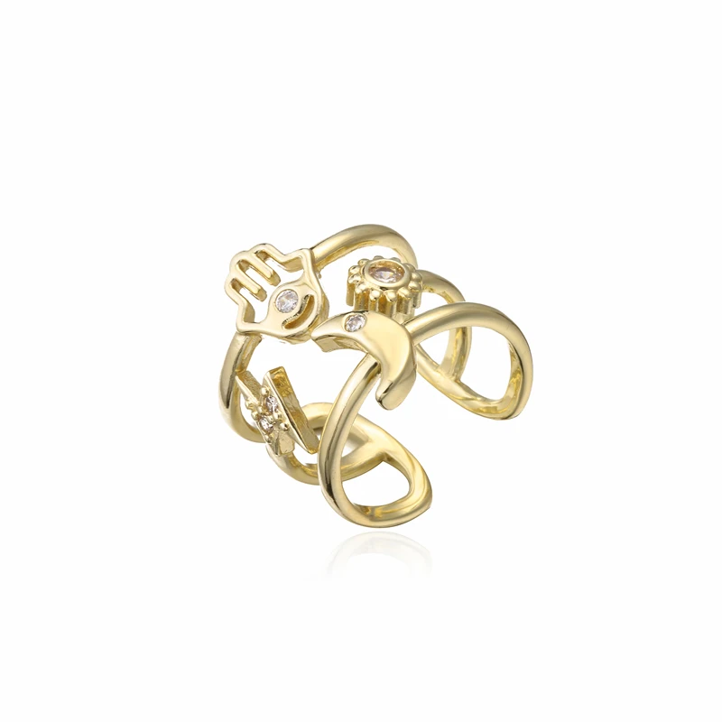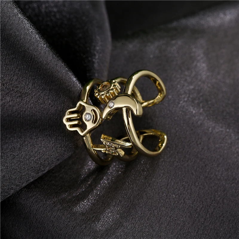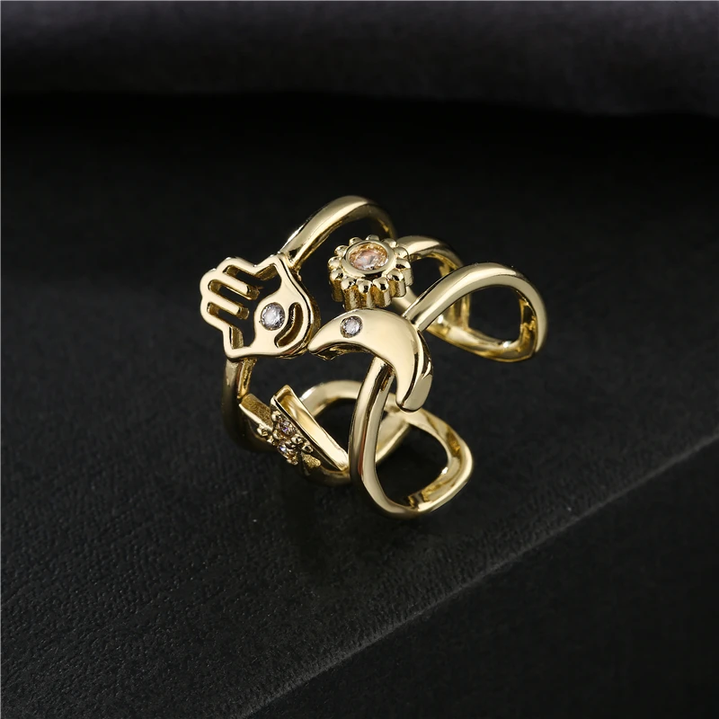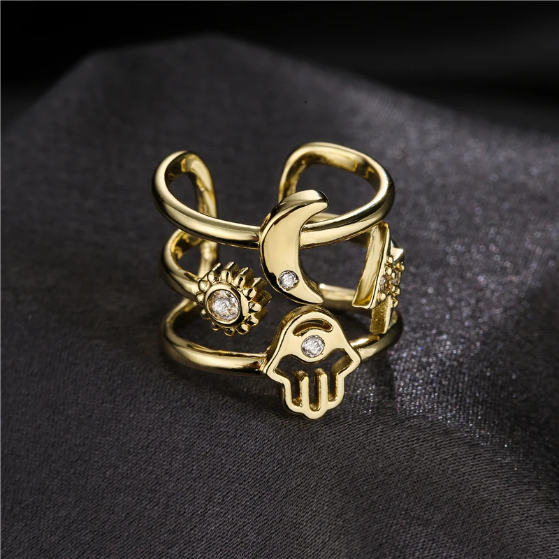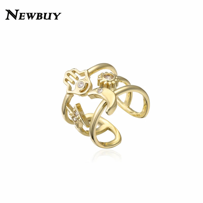 NEWBUY винтажное богемное Стильное кольцо с геометрическим рисунком солнца, луны, звезды, пальмы для женщин и девушек, Открытое кольцо золотого цвета, ювелирные изделия для вечеринки, женская бижутерия