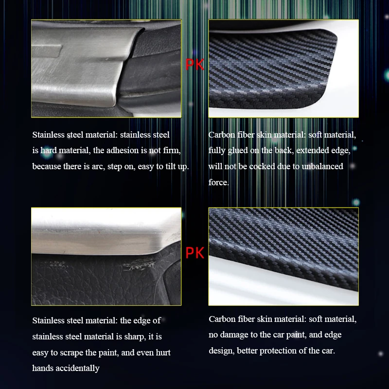 1. Материал: углеродное волокно, наклейка прочная и долговечная 2. Идеально подходит для украшения автомобильных дверей 3. Может эффективно защитить край внешней порога пластины, поглощает удары и предотвращает появление царапин 4.lnstallation очень легко, он имеет клей на спине, когда вы устанавливаете наклейку (Вы можете посыпать немного воды на заднюю часть наклейки, тогда вы можете свободно перемещать наклейки, чтобы избежать его достижения неправильного положения)