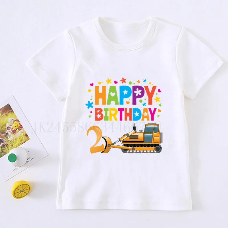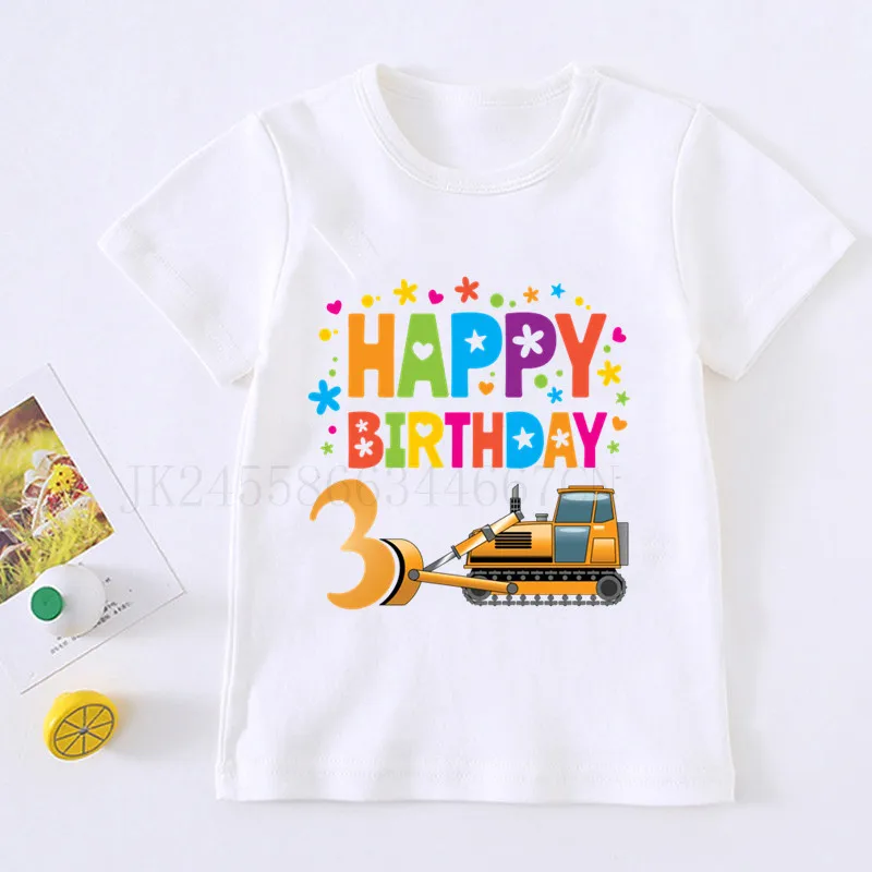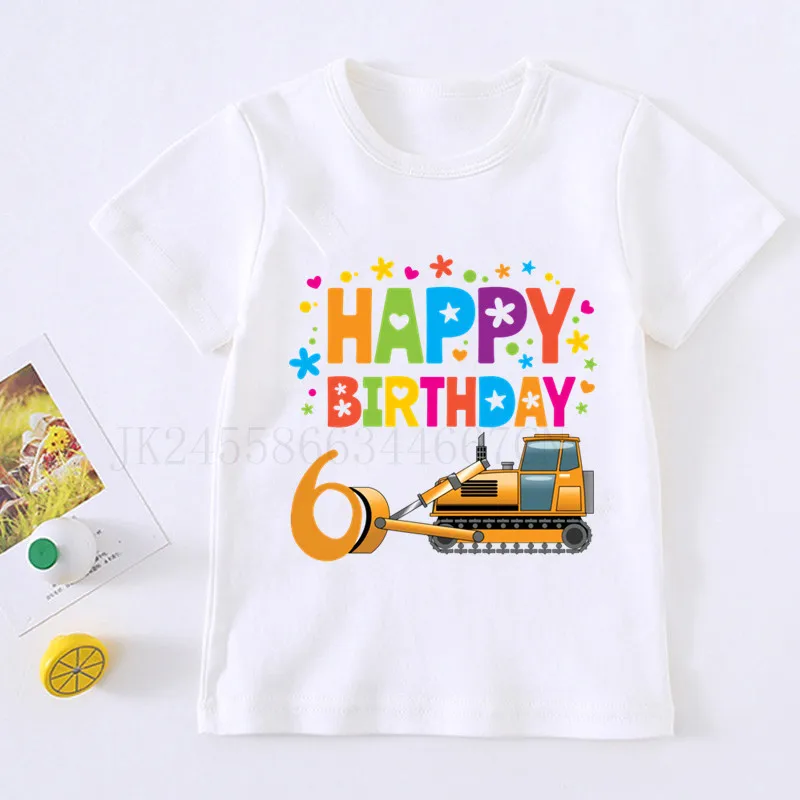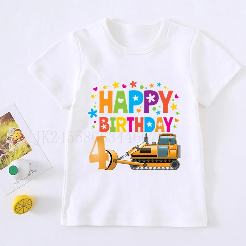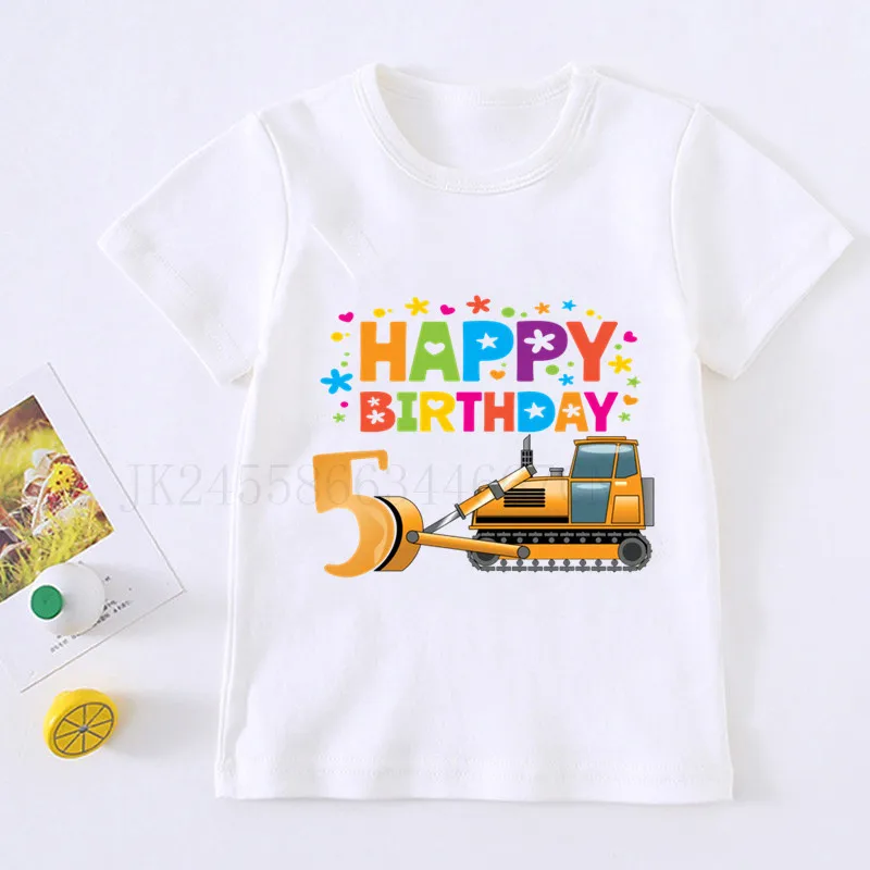 Бульдозер для мальчиков, с номером на день рождения 2-8, футболка с...