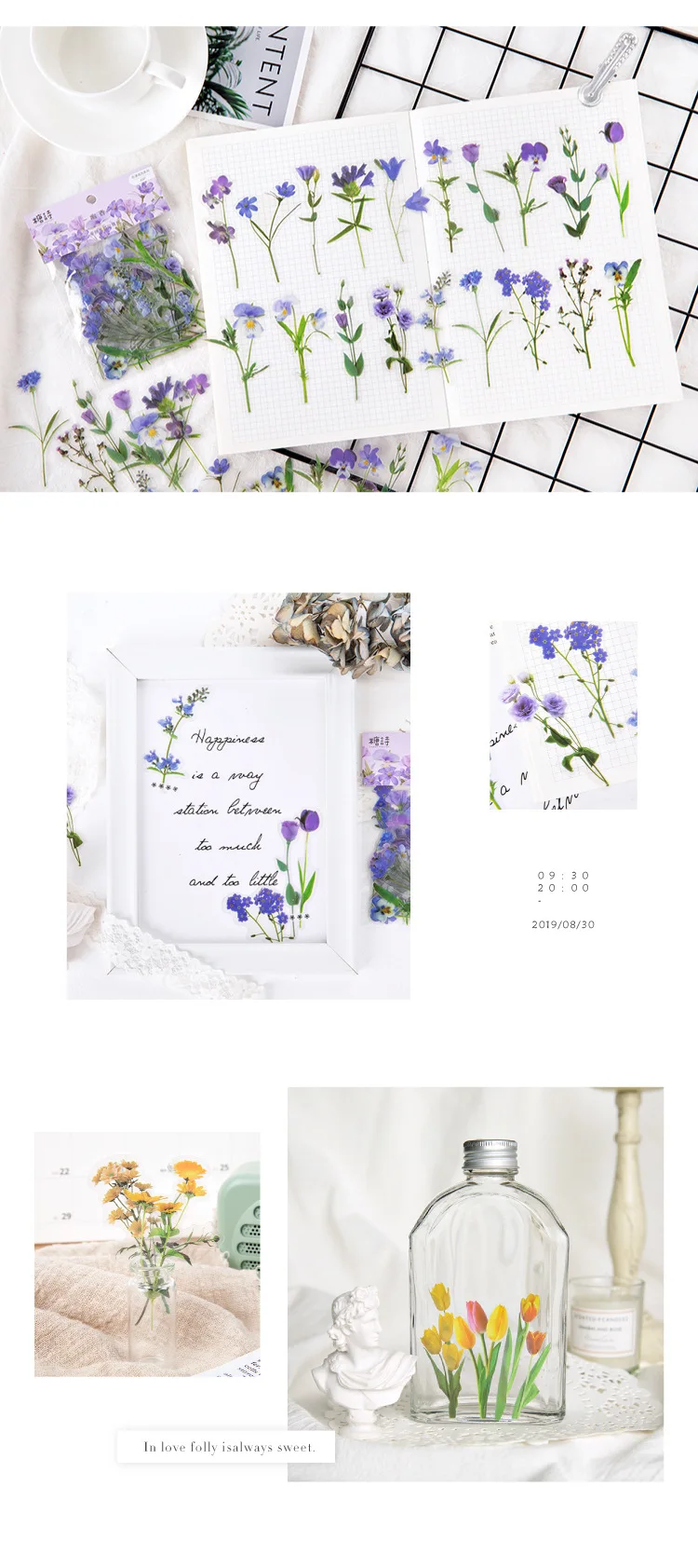 XINAHER 40 шт.пакет красивыми растениями Цветы Мини ПЭТ стикер для ...