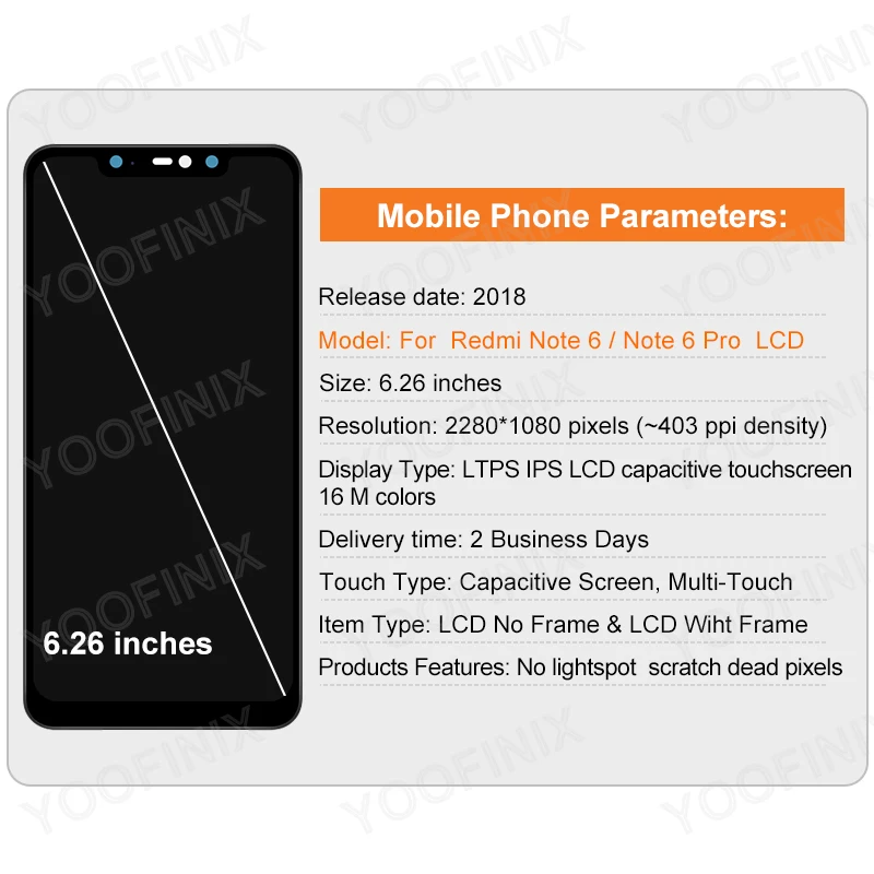 Номер моделиFor Xiaomi Redmi Note 6 Pro LCD