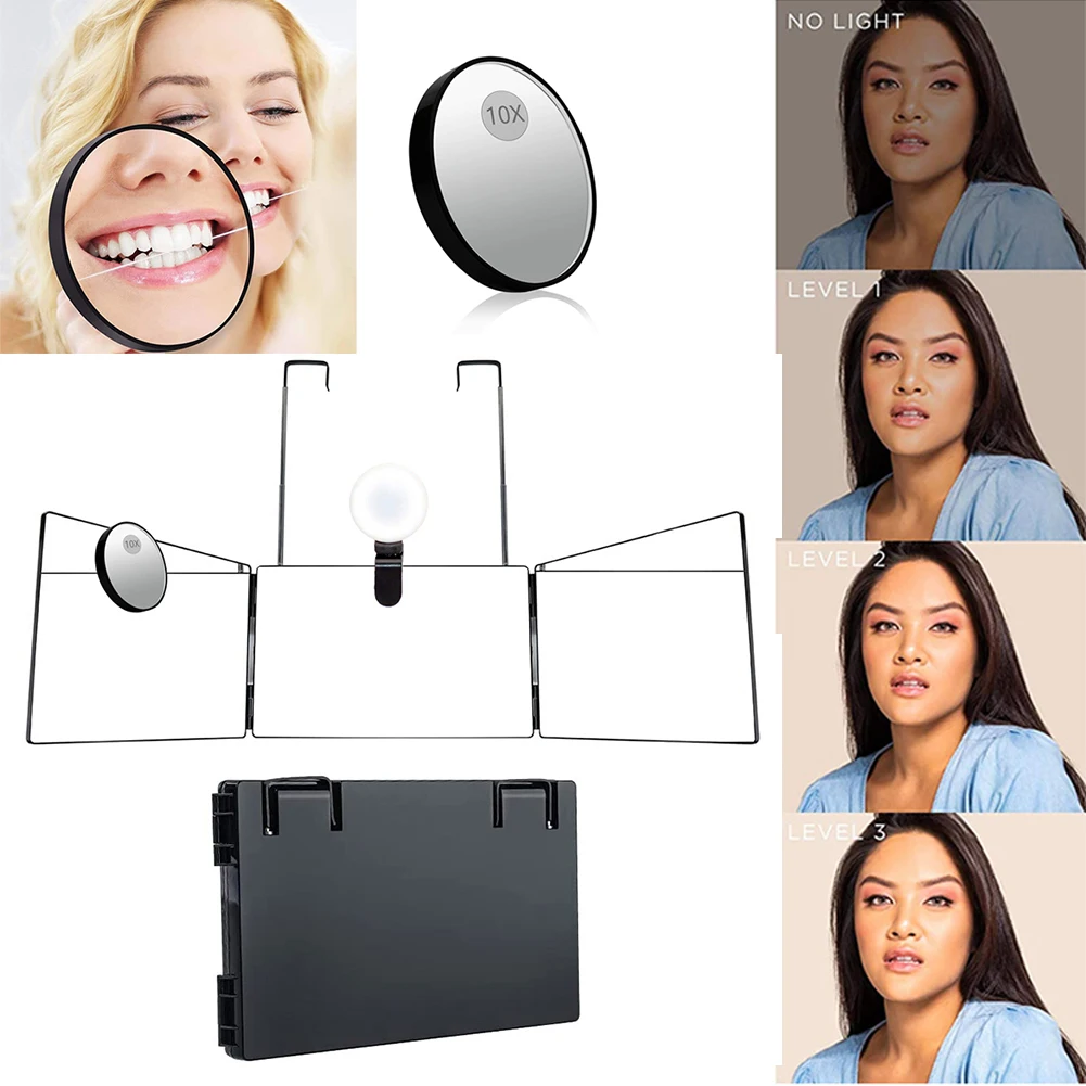 3-сторонний косметический инструмент сделай сам, Стайлинг, складное домашнее зеркало для макияжа, саморезка волос, тройной подвесной с заполнясветильник, головка для бритья