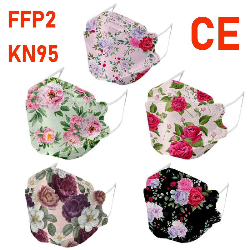 Маска для лица KN95 с цветочным принтом FFP2MASK многоразовая маска...