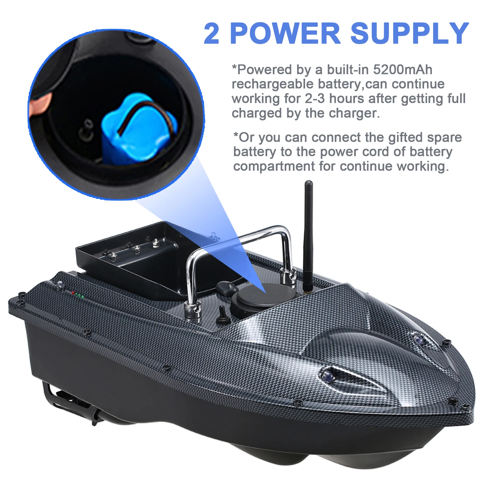 Беспроводное управление и функция GPS позволяют выпустить приманку далеко в озере, речке и резервуаре. Большой контейнер для наживки может вместить около 4,4 фунта приманки для приманок игровой рыбы. Легкое управление для любителей рыбалки или начинающих, а также приятно для детей.Особенности:Функция GPS помогает установить 16 произвольных точек позиционирования, и лодка может быть назад и вперед на основе точки, которую вы устанавливаете.При обнаружении потери сигнала или низкого заряда батареи лодка автоматически возвращается в исходное положение через 15 секунд. Не беспокойтесь о потере.ЖК-дисплей пульта дистанционного управления будет отображать несколько данных для вашего, как батарея питания, расстояние, компас, положение и свет.Большой контейнер для наживки с несущей способностью около 4,4 фунта для большего количества наживок.Беспроводное управление и фиксированная скорость круизного переключателя, позволяют выпустить приманку далеко. (Дистанционный диапазон: 400-500 метров)Двойные двигатели и двойные пропеллеры делают лодку легкой спортивной и кроллинг.1 переднее белое освещение и 2 задних синих ночника для ночной рыбалки и кормления.Лодка-приманка работает от аккумулятора 5200mAh/10000mAh (опционально) (входит в комплект).Обтекаемый корпус из АБС уменьшает Водонепроницаемость и 5 уровней волн.Пульт ДУ работает от четырех батареек типа АА (входят в комплект).Поставляется сумка для удобного хранения и переноски.Спецификация:Аккумулятор для приманки: 5200 мАч/10000 мАч (опционально)Время зарядки: прибл. 10hrs / 15hrsНепрерывное время работы: прибл. 2hrs / 4hrsМатериал: АБС + металлУдаленная Батарея: 4 * AA батареи (в комплекте)Несущая способность приманки: 2 кг/4,4 фунтовДальность действия: 400 - 500 м/437 - 546 ярдовРазмер приманки: 485*264*160 мм/19,1*10,4*6,3 дюймаВес приманки: прибл. 1,9 кг/4,2 фунтов лёгкий нейлоновый тросВес упаковки: прибл. 2,9-3,0 КГ/6,4-6,6 фунтов лёгкий нейлоновый тросВ комплект входит:1 * Приманка лодка (с recharegable батареей)1 * пульт дистанционного управления (с 4 батареями AA)1 * антенна1 * Руководство пользователя1 * зарядное устройство2 * Запасные пропеллеры1 * сумка для хранения