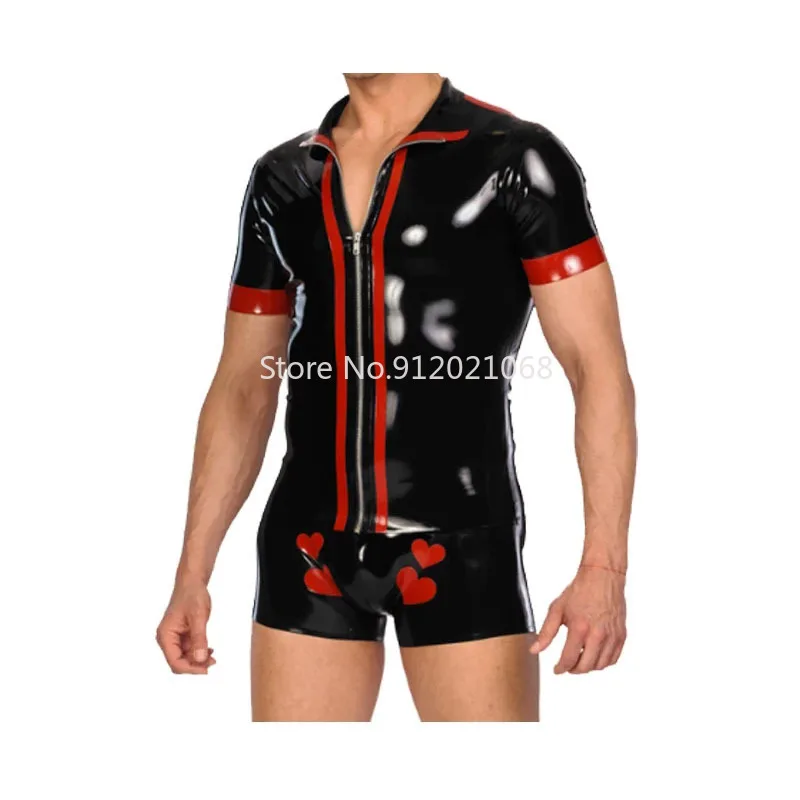 Латексный мужской топ с короткими рукавами красного и черного цветов, на молнии, трусы-боксеры, размер XXS-XXL
