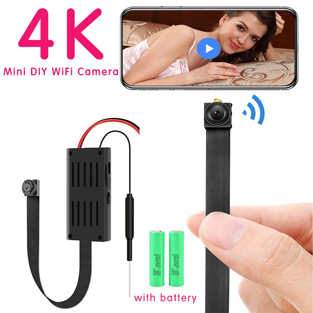 Мини-камера видеонаблюдения, 4K, Wi-Fi, с пультом ДУ