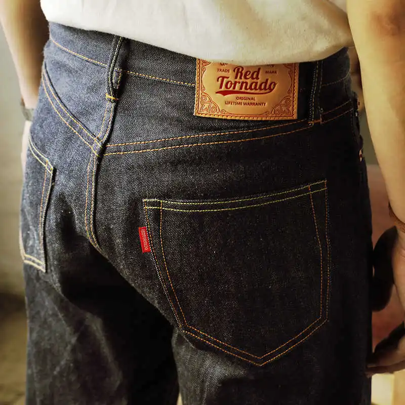 Красные Tornado 55501 мужские джинсы 14 унций необработанные красные прямые джинсовые брюки
